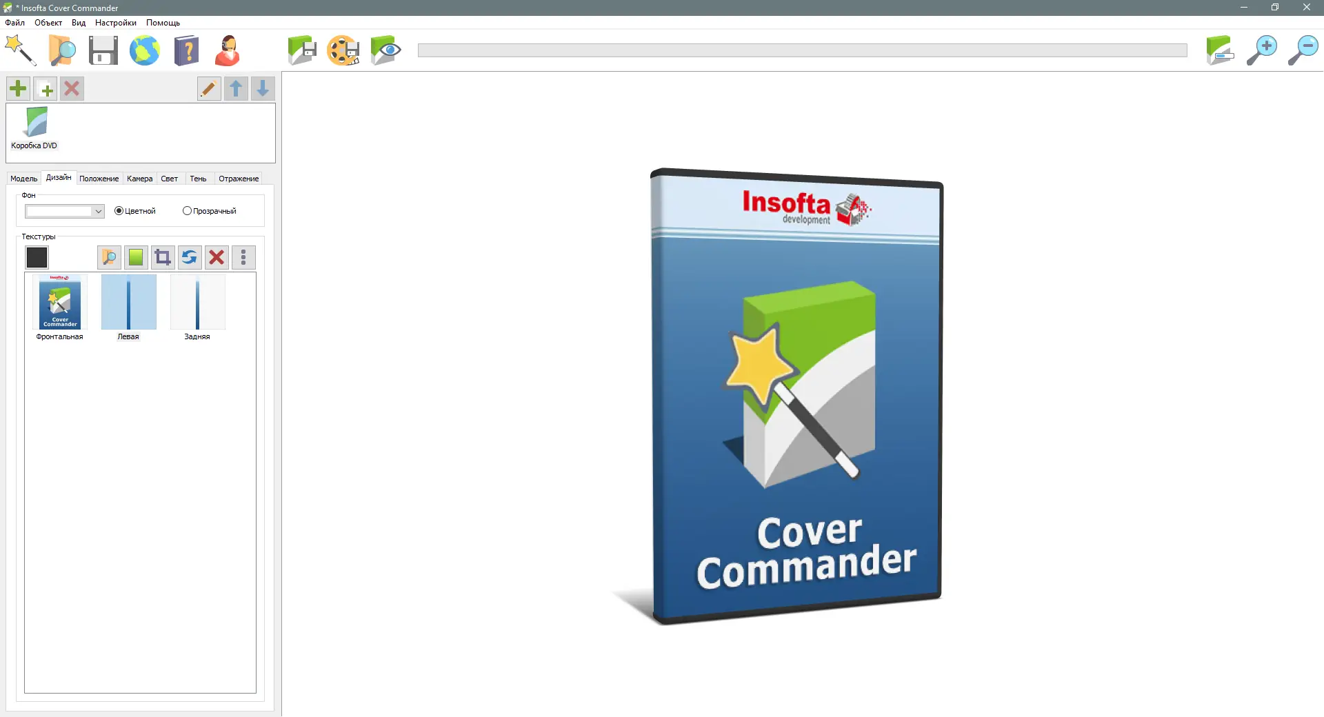 Insofta Cover Commander предлагает инструменты для быстрого и качественного создания виртуальных упаковок без необходимости использования сложных графических редакторов. Программа поддерживает широкий набор 3D-моделей, включая DVD, Blu-ray, CD, книги, руководства, электронные устройства и другие типы контейнеров. Каждый элемент можно детально настроить: изменить текстуру, угол обзора, интенсивность света и глубину теней.
