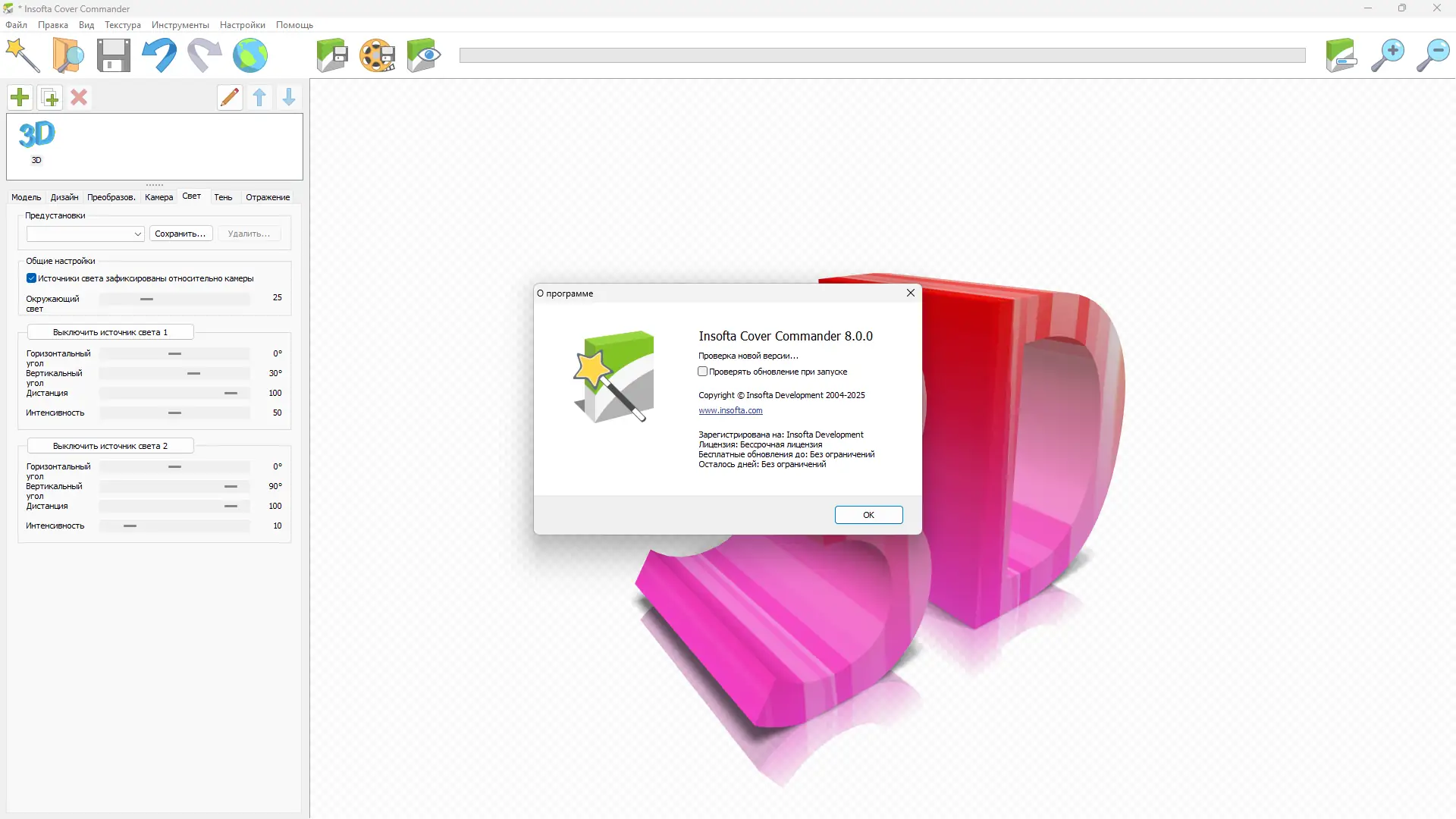 Insofta Cover Commander — это программное обеспечение для создания реалистичных 3D-изображений упаковки, дисков, книг, электронных устройств и других продуктов. С его помощью можно за несколько минут сгенерировать визуальные материалы для презентаций, интернет-магазинов, рекламных кампаний или цифровых каталогов. Интерфейс интуитивно понятен, а встроенные шаблоны и настройки позволяют добиться профессионального результата без привлечения графических дизайнеров.