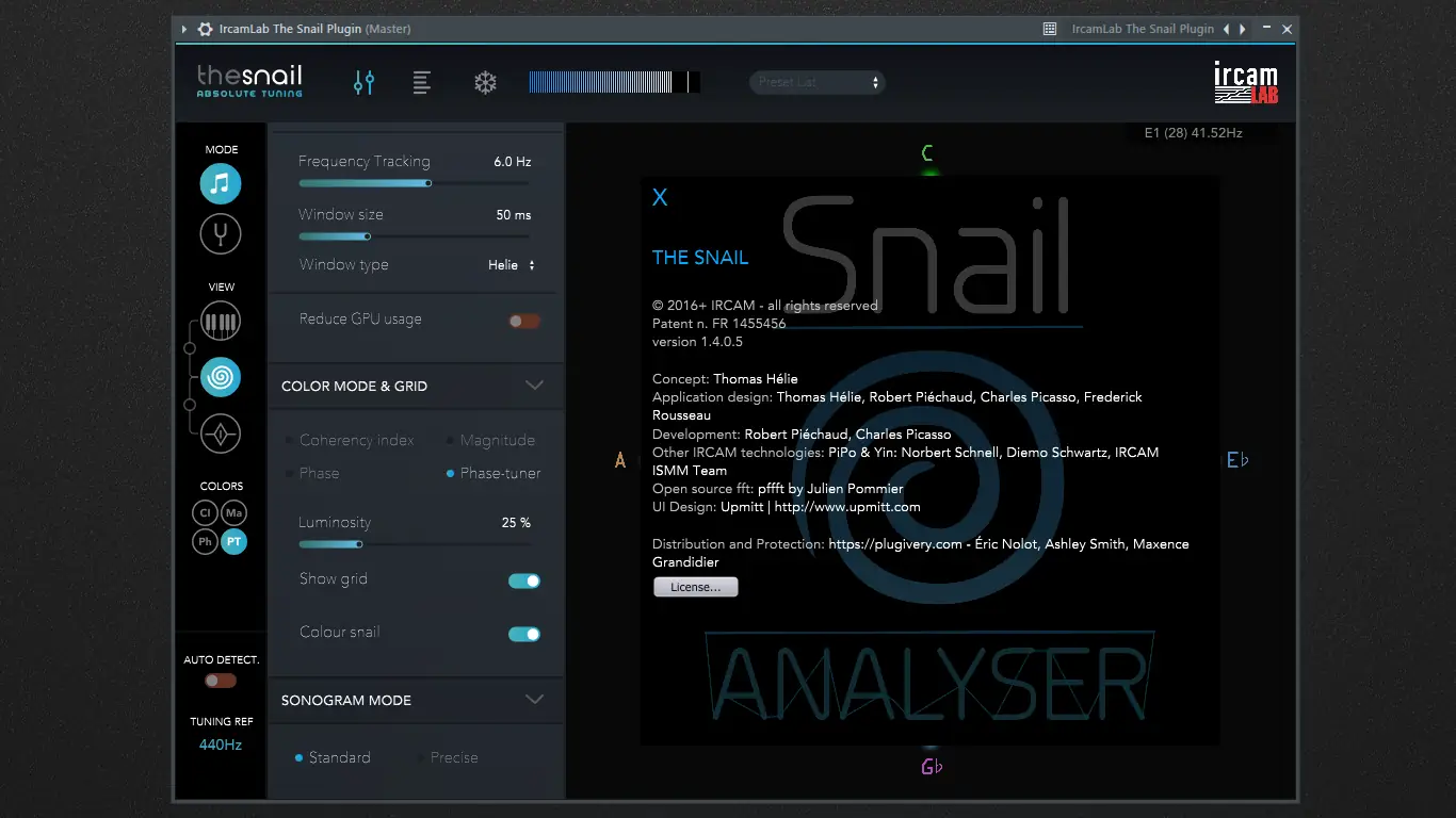 Ircam Lab — The Snail представляет собой инновационный инструмент в области аудиоанализа, ориентированный на глубокое понимание структуры звука. Он преобразует сложные частотные данные в понятные визуальные элементы, основанные на музыкальных нотах и гармонических ладах, что позволяет легко воспринимать даже тонкие отклонения в интонации. Программа особенно полезна при работе с акустическими инструментами, вокалом или звуками природного происхождения, где важна точность подстройки и чистота обертонов.