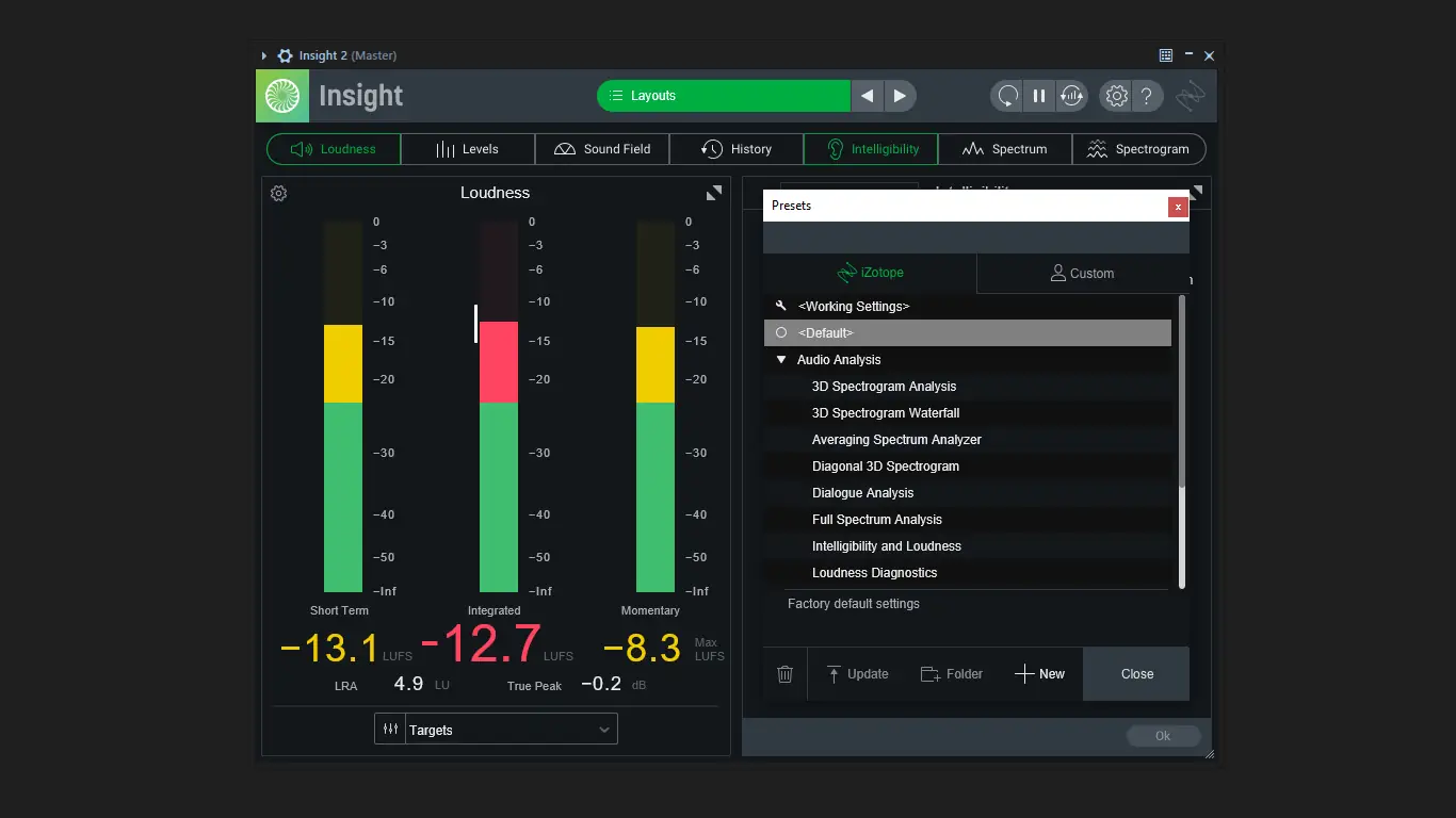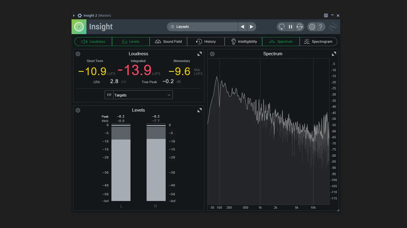 Мощный аудиоанализирующий плагин iZotope Insight предоставляет профессиональные инструменты для визуализации и контроля звукового сигнала в процессе сведения, мастеринга и постпродакшна. Программа позволяет точно оценивать громкость, спектральный баланс, стереоизображение и другие параметры, обеспечивая соответствие современным стандартам.