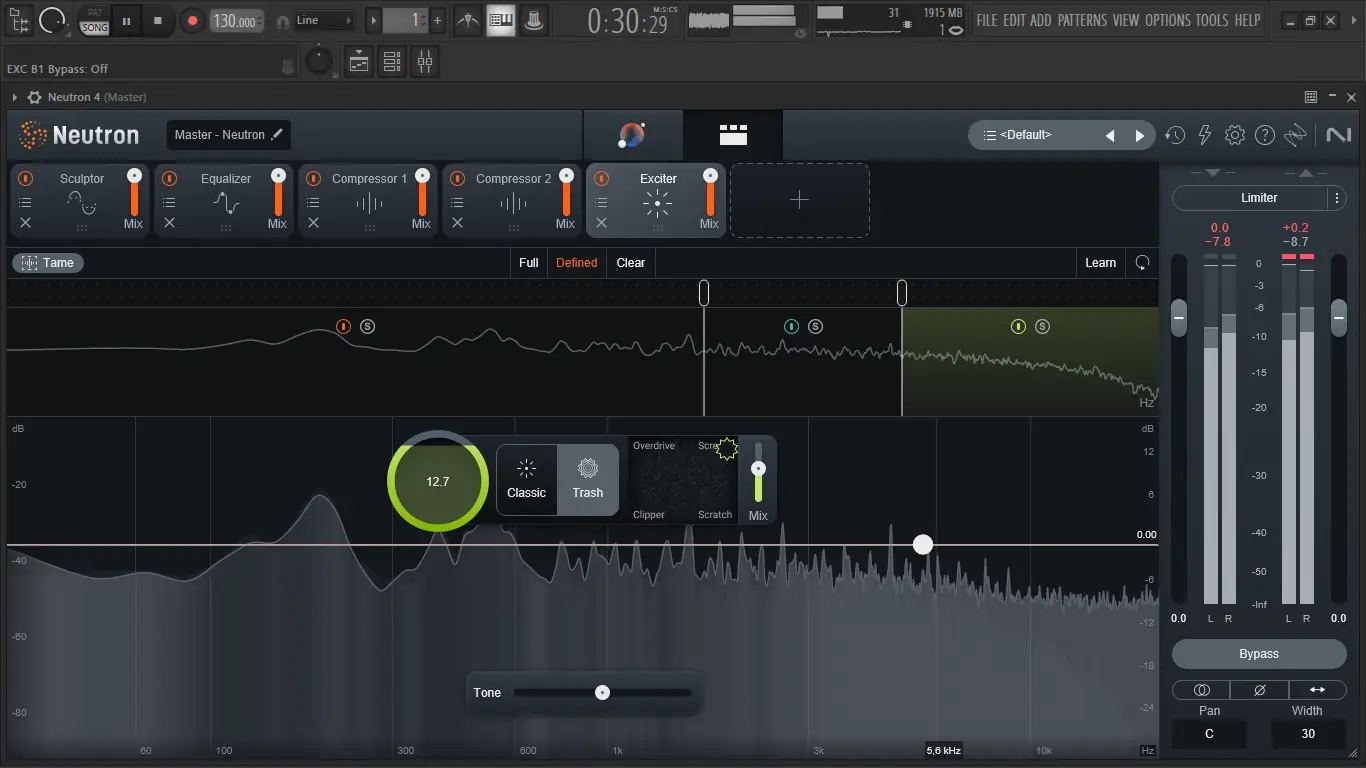 Использование Neutron 4 начинается с установки плагина в DAW и выбора нужной дорожки для обработки. После запуска активируется Mix Assistant, который анализирует звук и подбирает начальные параметры. Пользователь может корректировать настройки через Assistant View, где доступны Intent Controls для регулировки панча и дисторшна. Для сравнения с эталонным звучанием можно загрузить референс или выбрать пресет из Target Library. Модуль Unmask применяется между двумя дорожками, например, бас-гитарой и бочкой, чтобы автоматически освободить частотное пространство. Внутри каждого модуля доступны детальные параметры, включая Trash Mode в эксайтере и Oscilloscope View в компрессоре, что позволяет точно контролировать изменения сигнала.