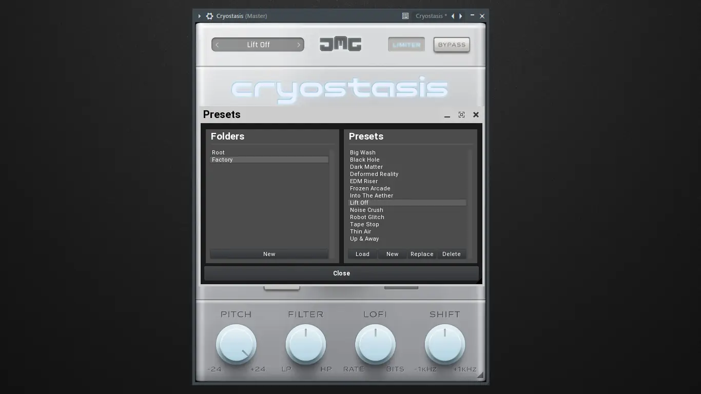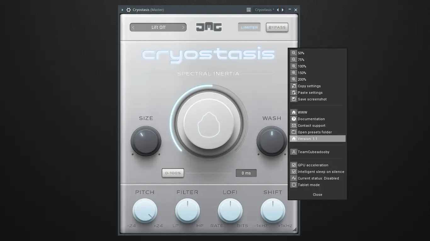 JMG Sound представляет собой цифровой плагин, реализующий концепцию спектрального замораживания в реальном времени. Основой его работы является эффект под названием Cryostasis, который фиксирует частотный спектр входящего сигнала и растягивает его во времени, создавая ощущение звука, застывшего в пространстве. Управление осуществляется через бесступенчатую ручку заморозки или автоматический переключатель, синхронизируемый по тактам или миллисекундам. Это делает инструмент универсальным для работы в живом выступлении и в студии.