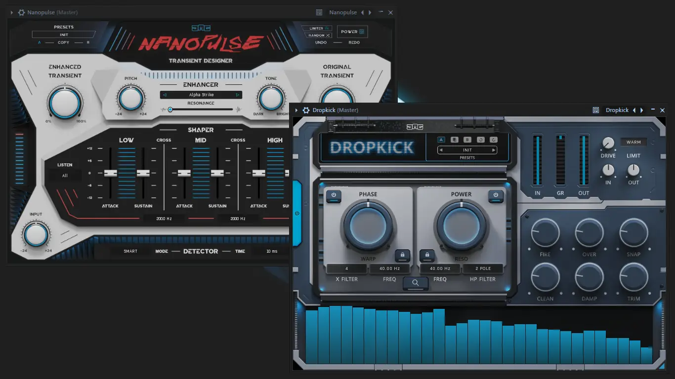 Использование плагинов не требует глубоких технических знаний. Достаточно загрузить нужный процессор в DAW, выбрать предустановку или настроить параметры вручную. Управление интуитивно понятно: основные функции вынесены на переднюю панель, а дополнительные настройки доступны в меню. Например, Mirror позволяет создавать обратную задержку, просто активировав режим отрицательного времени. Dropkick автоматически анализирует транзиенты бас-барабана и усиливает их с учётом громкости и частотного диапазона. Retronaut имитирует аналоговую нестабильность с помощью параметров вибрато и хоруса, идеально подходя для лоу-фай текстур. Nanopulse, в свою очередь, позволяет формировать атаку ударных и синтезаторов, добавляя резкости и чёткости в миксе.