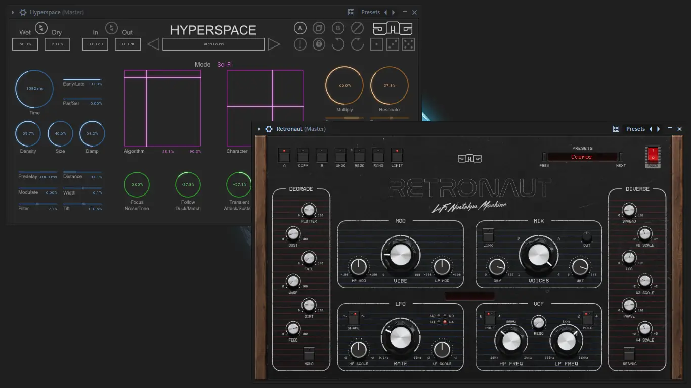 - HyperSpace предлагает алгоритмическую реверберацию с возможностью создания уникальных цепочек обработки, включая режимы от винтажных до футуристических.