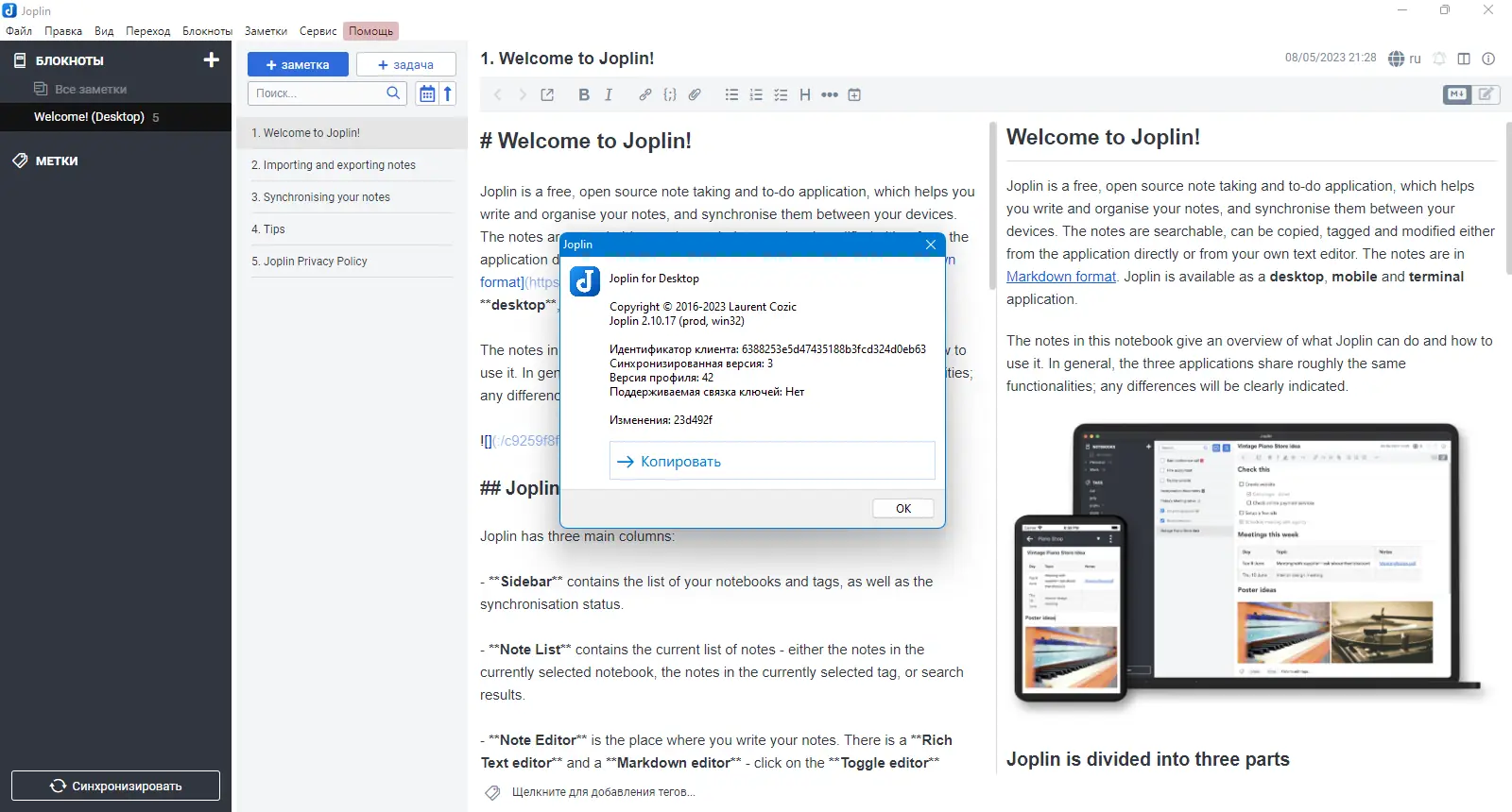 Работа с Joplin