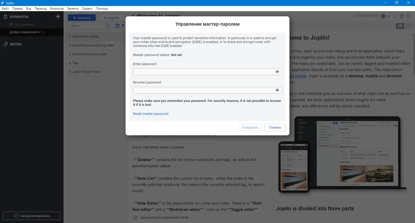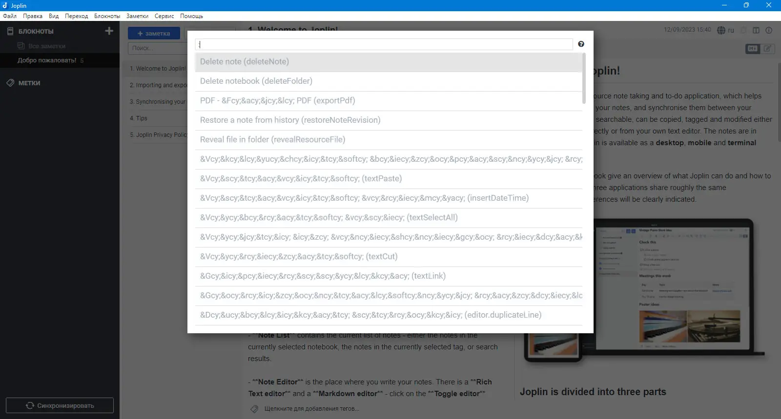 Работа с Joplin