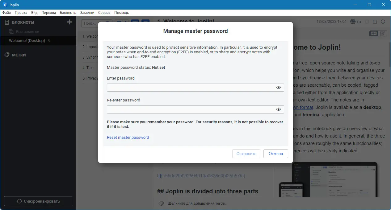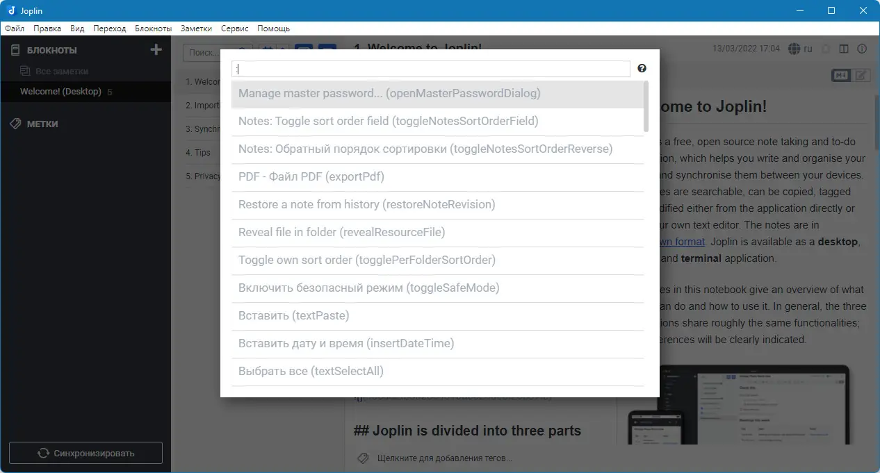 Работа с Joplin