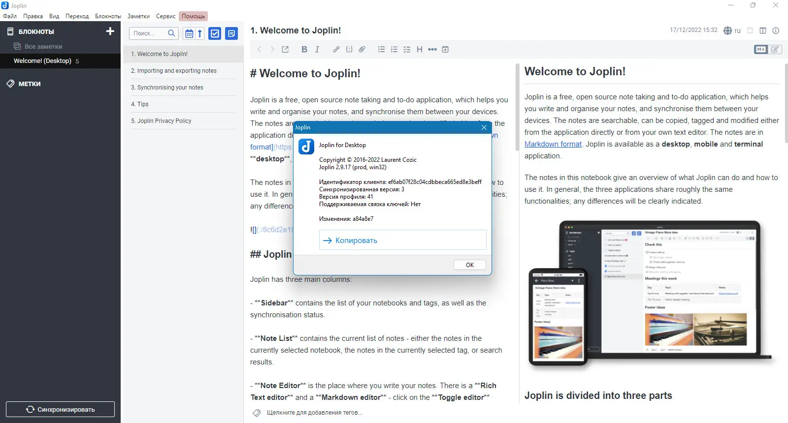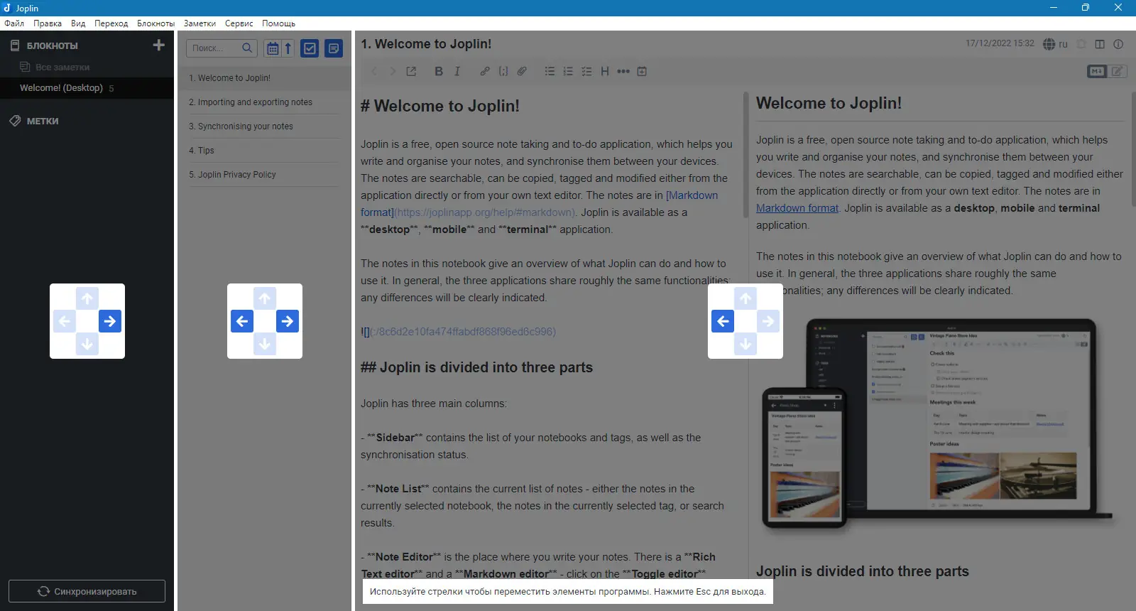 Бесплатное приложение Joplin — это мощный менеджер заметок с открытым исходным кодом, предназначенный для эффективной организации текстовой информации. Программа поддерживает формат Markdown, позволяет синхронизировать данные через облачные хранилища и работает на настольных, мобильных и терминальных платформах. Удобный интерфейс, поддержка меток, блокнотов и полный контроль над данными делают Joplin отличным выбором для систематизации идей, задач и личных записей.
