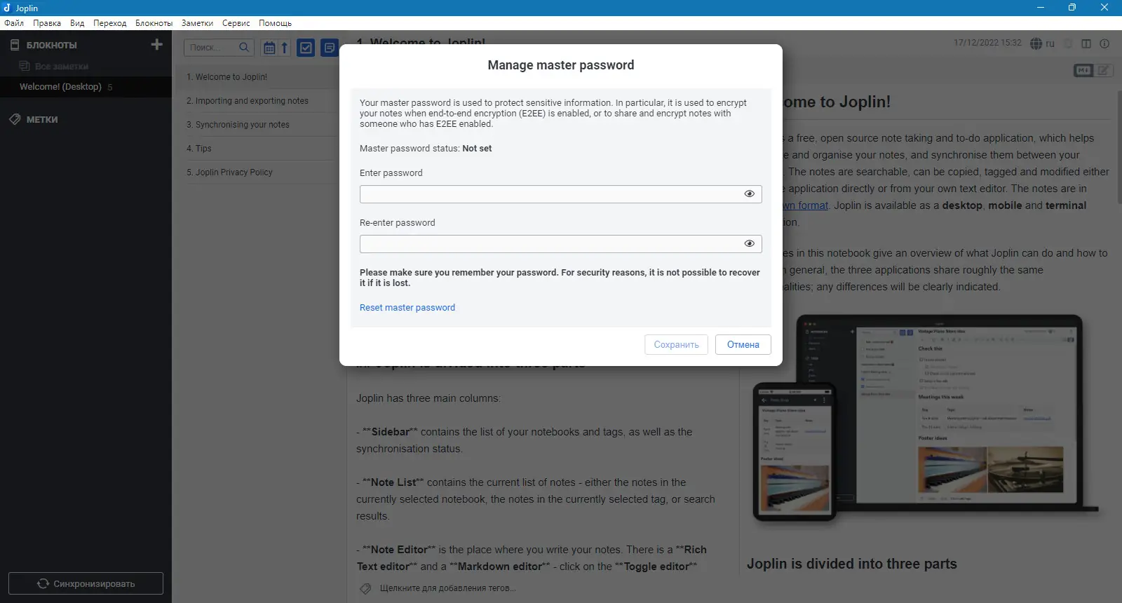 Joplin представляет собой кроссплатформенное приложение для ведения заметок, ориентированное на пользователей, ценящих прозрачность, безопасность и автономность. Все данные хранятся локально и могут быть синхронизированы через доверенные облачные сервисы, такие как Dropbox, OneDrive, Nextcloud или WebDAV. Архитектура приложения основана на текстовых файлах, что обеспечивает долгосрочную совместимость и упрощает резервное копирование информации.