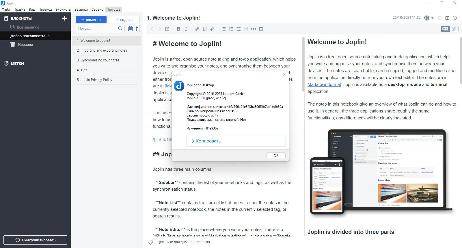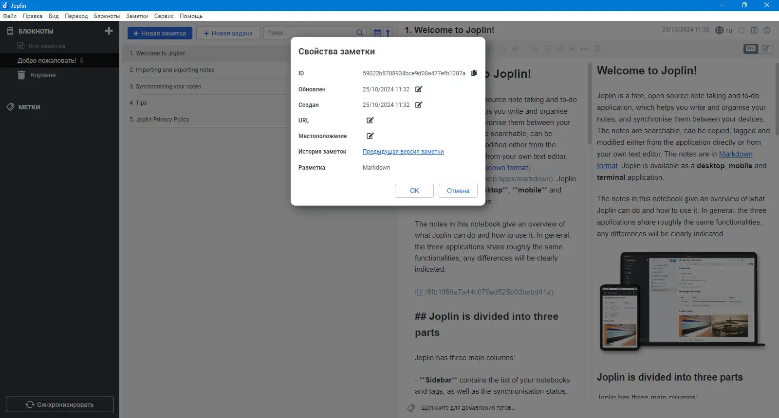 Joplin хранит все данные в текстовых файлах, что упрощает резервное копирование, миграцию и проверку содержимого без использования специализированного ПО.