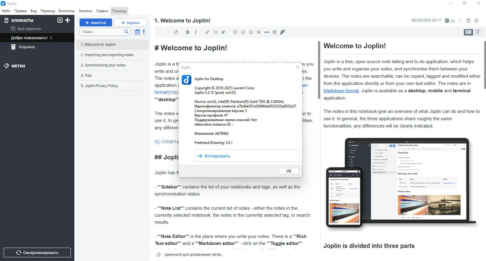 Как пользоваться Joplin