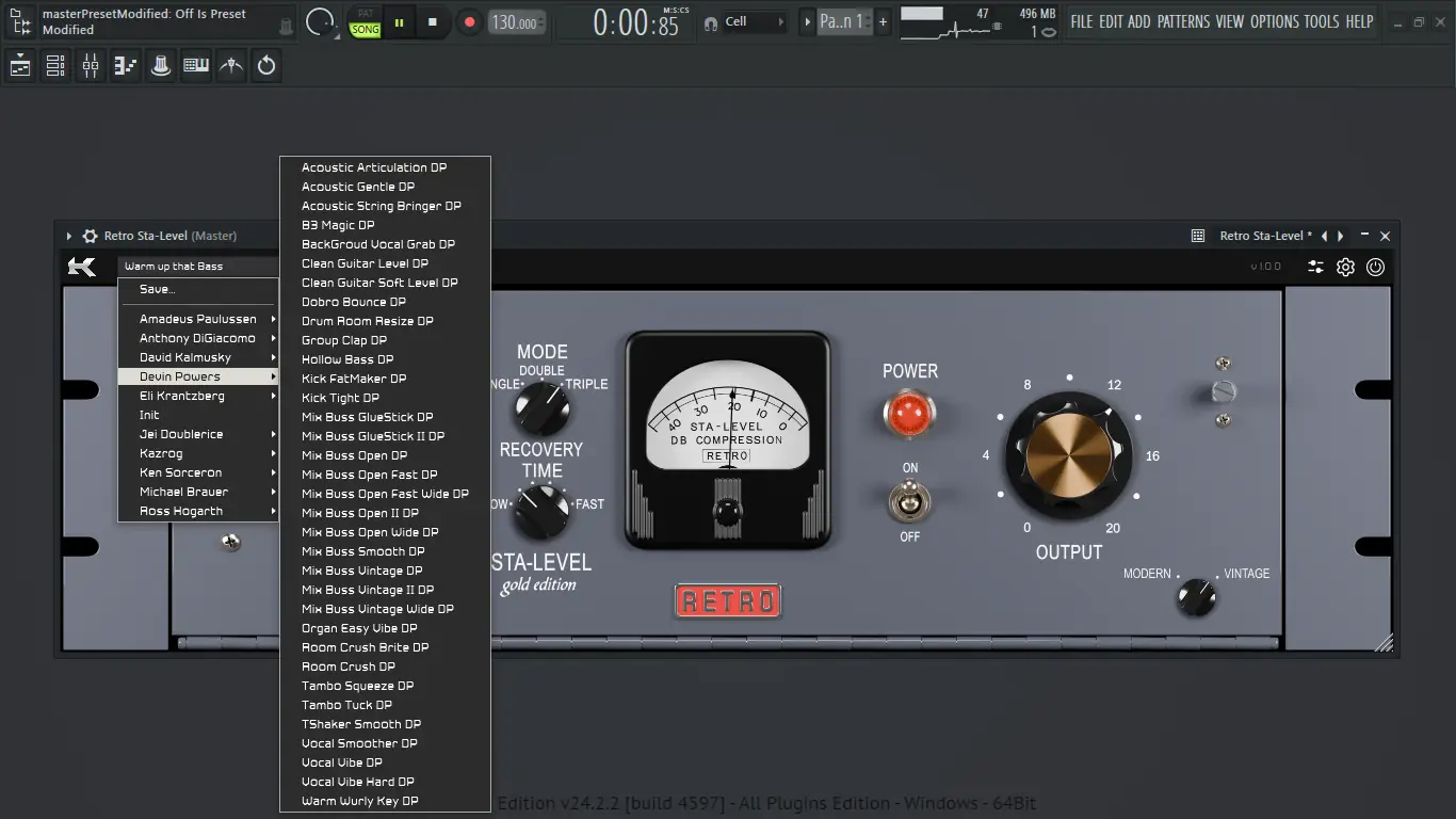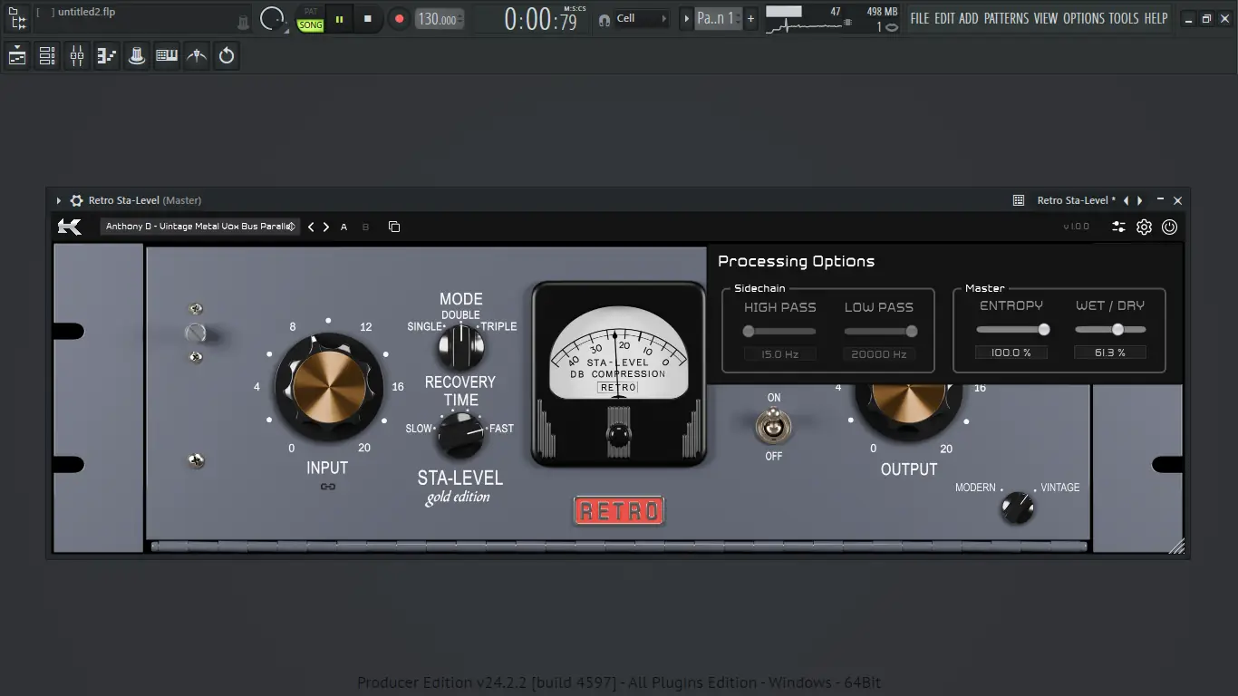 Использование Kazrog Retro Sta-Level интуитивно понятно даже для начинающих пользователей. После установки плагин доступен в DAW как стандартный VST-процессор. Выбор между Modern и Vintage Mode позволяет быстро адаптировать звучание под конкретный материал — будь то бас-гитара, вокал или ударные. Регулировка порога, атаки, релиза и соотношения позволяет тонко настраивать динамику, а встроенные фильтры сайдчейна помогают избежать нежелательного срабатывания компрессии на низких или высоких частотах. Функция wet/dry blend даёт возможность создавать параллельное сжатие без необходимости настройки дополнительных маршрутов, а Analog Entropy добавляет ощущение живого аналогового устройства, имитируя естественные колебания компонентов.