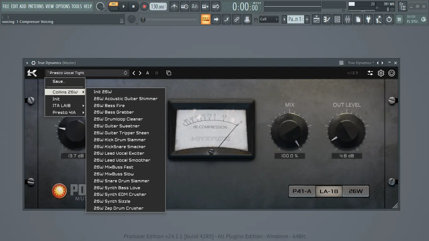 Три легендарных винтажных ламповых компрессора — Presto 41A, ITA LA1B и Collins 26W — теперь доступны в формате плагина для цифровых аудиостанций. Kazrog True Dynamics предлагает высокоточную эмуляцию редкого аналогового оборудования, используемого ведущими звукорежиссёрами. Программа сочетает в себе передовые технологии моделирования и удобный интерфейс, позволяя добиваться насыщенного, тёплого звучания в любых проектах.
