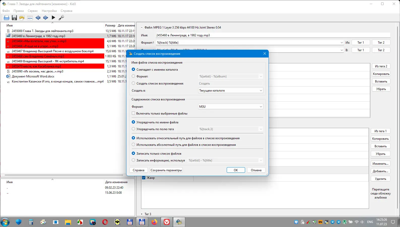 Kid3 — бесплатный портативный редактор тегов аудиофайлов для Windows, не требующий установки. Программа поддерживает множество форматов, включая MP3, FLAC, OGG, AAC и другие. Позволяет массово редактировать метаданные, переименовывать файлы, создавать плейлисты и импортировать информацию из онлайн-баз.