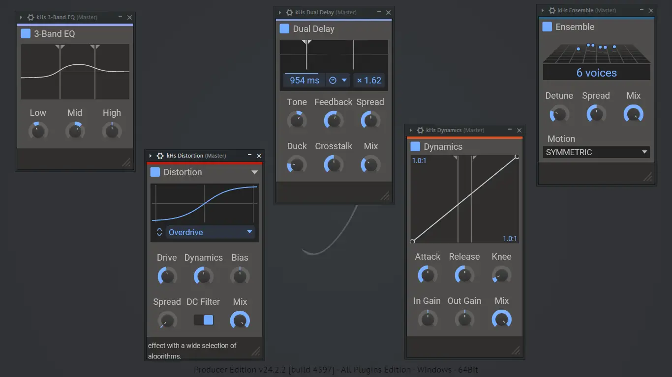 kiloHearts — это не просто набор отдельных плагинов, а продуманная экосистема, построенная вокруг концепции модульности и взаимозаменяемости компонентов. Каждый эффект представлен в виде Snapin, который можно использовать как автономно, так и в составе модульных хостов, таких как Phase Plant. Такой подход обеспечивает беспрецедентную гибкость при создании уникальных звуков и эффектов.