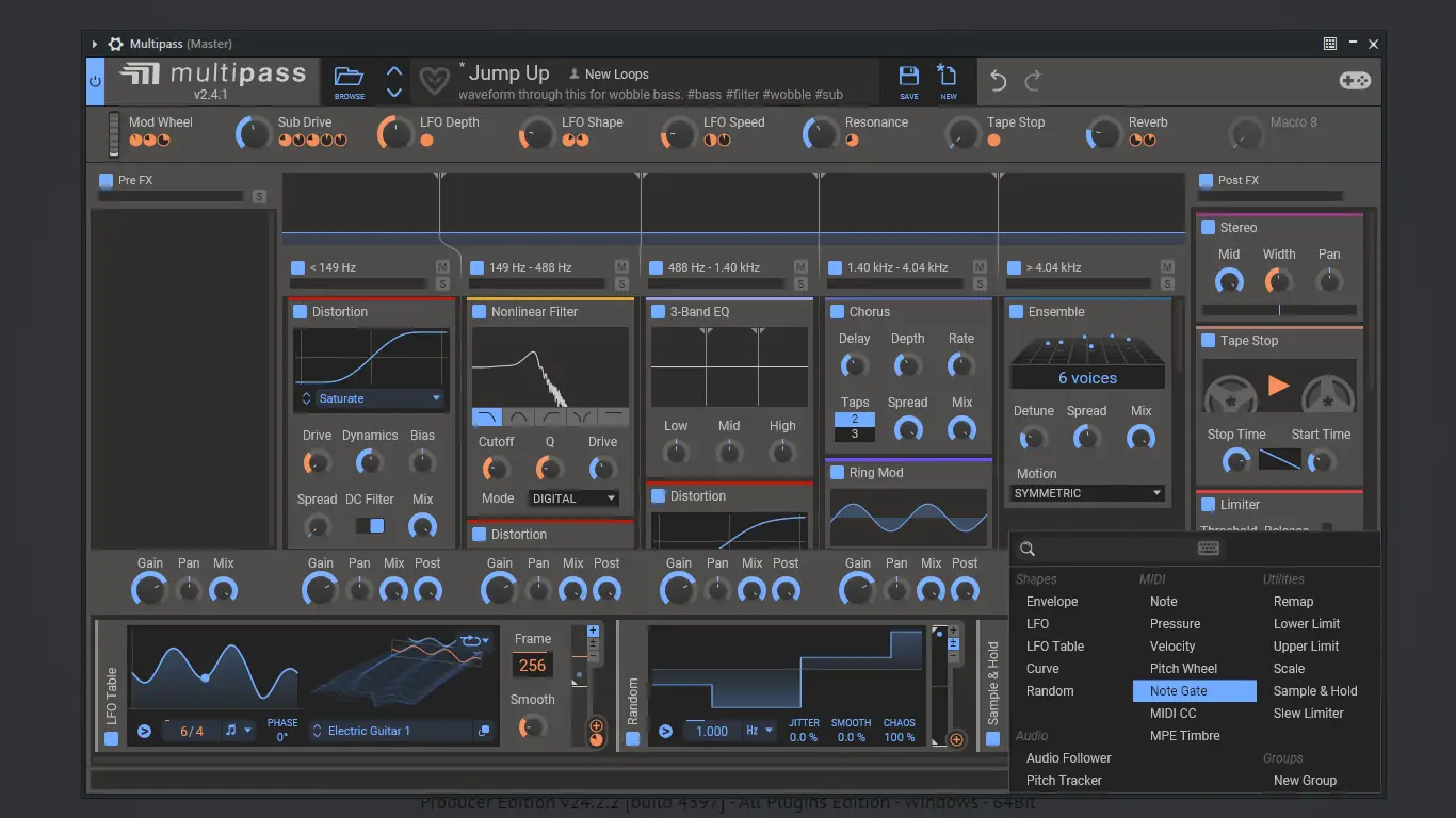 Использование kiloHearts начинается с выбора подходящего хоста — например, Phase Plant для синтеза или Multipass для многополосной обработки. Внутри хоста можно последовательно добавлять Snapins, комбинируя фильтры, модуляторы, эффекты задержки и дисторшна. Каждый элемент настраивается с помощью интуитивного интерфейса, который позволяет точно контролировать параметры в реальном времени. Особое внимание стоит уделить такому инструменту, как pitch shifter, который работает без артефактов и идеально подходит для вокальных экспериментов или создания эффекта «голоса из будущего». Функция tape stop позволяет имитировать остановку плёнты, создавая драматическое замедление звука — этот эффект часто используется в электронной музыке для переходов между секциями композиции. Всё это доступно в рамках единого bundle, который охватывает полный цикл звуковой обработки — от базовой коррекции до сложного синтеза.