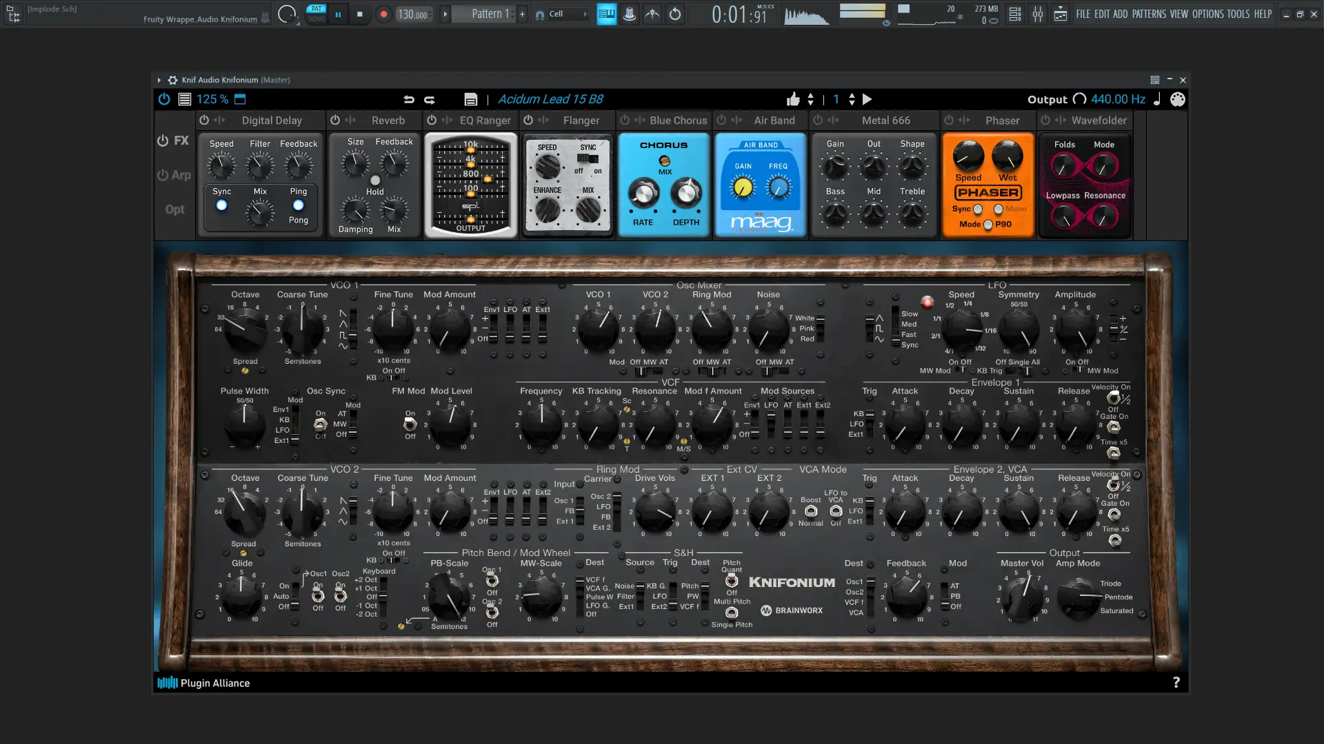 Knifonium выделяется на фоне других синтезаторных плагинов благодаря глубокой детализации моделирования и музыкальности звучания. Он не просто имитирует аналоговый аппарат — он передаёт его характер, включая нюансы, возникающие из-за температурных дрейфов и разброса параметров ламп. При этом программная версия добавляет функции, недоступные в физическом устройстве, делая инструмент более универсальным. Однако, из-за высокой вычислительной нагрузки, особенно при использовании максимальной полифонии, могут возникать задержки на слабых системах.