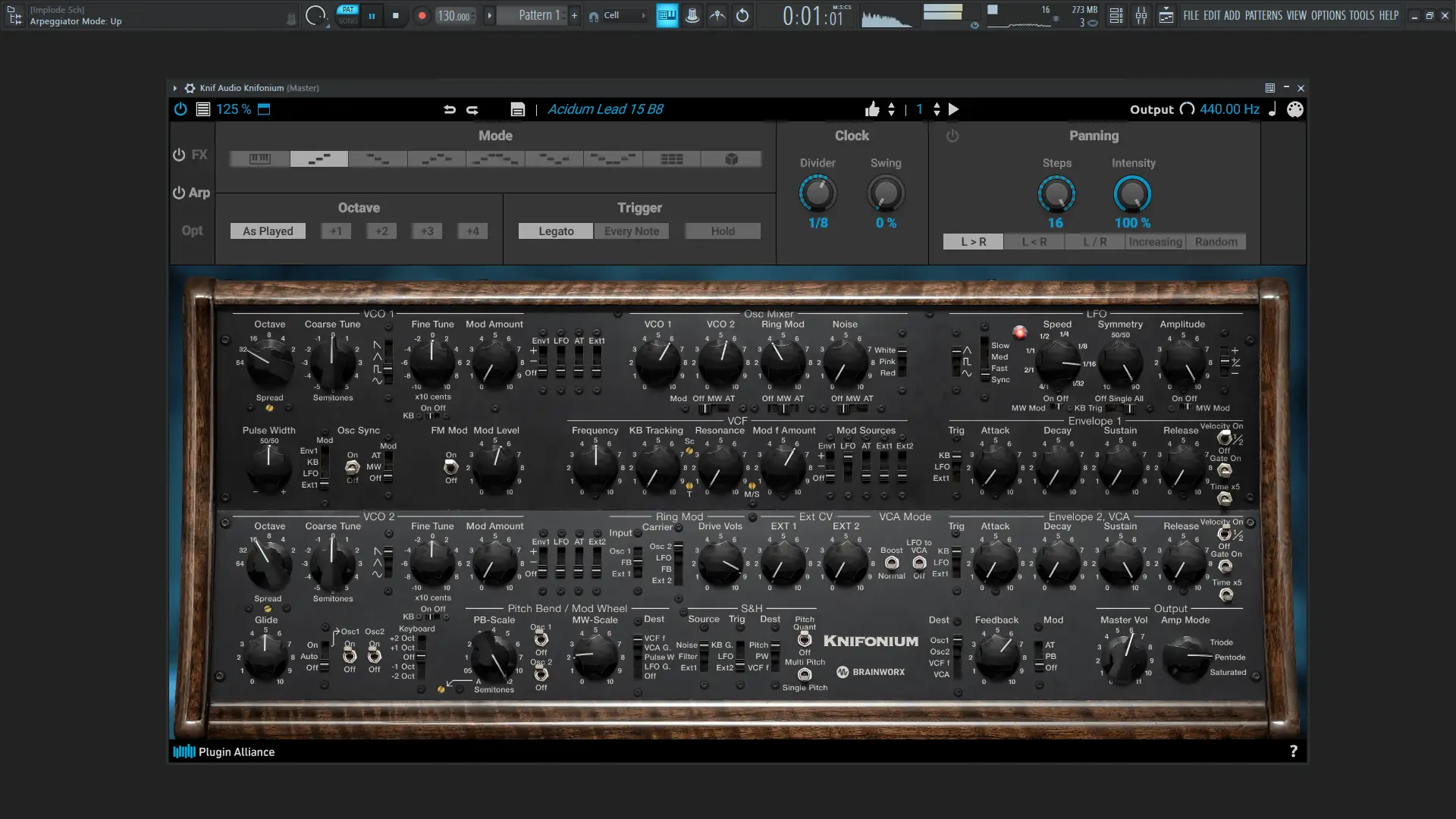 - Интегрированный арпеджиатор с гибкими настройками панорамирования и модуляции