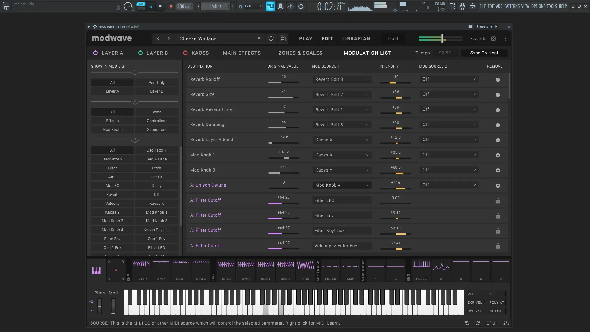 - Гибкая система модуляции с поддержкой LFO, огибающих, последовательностей и макроуправления.