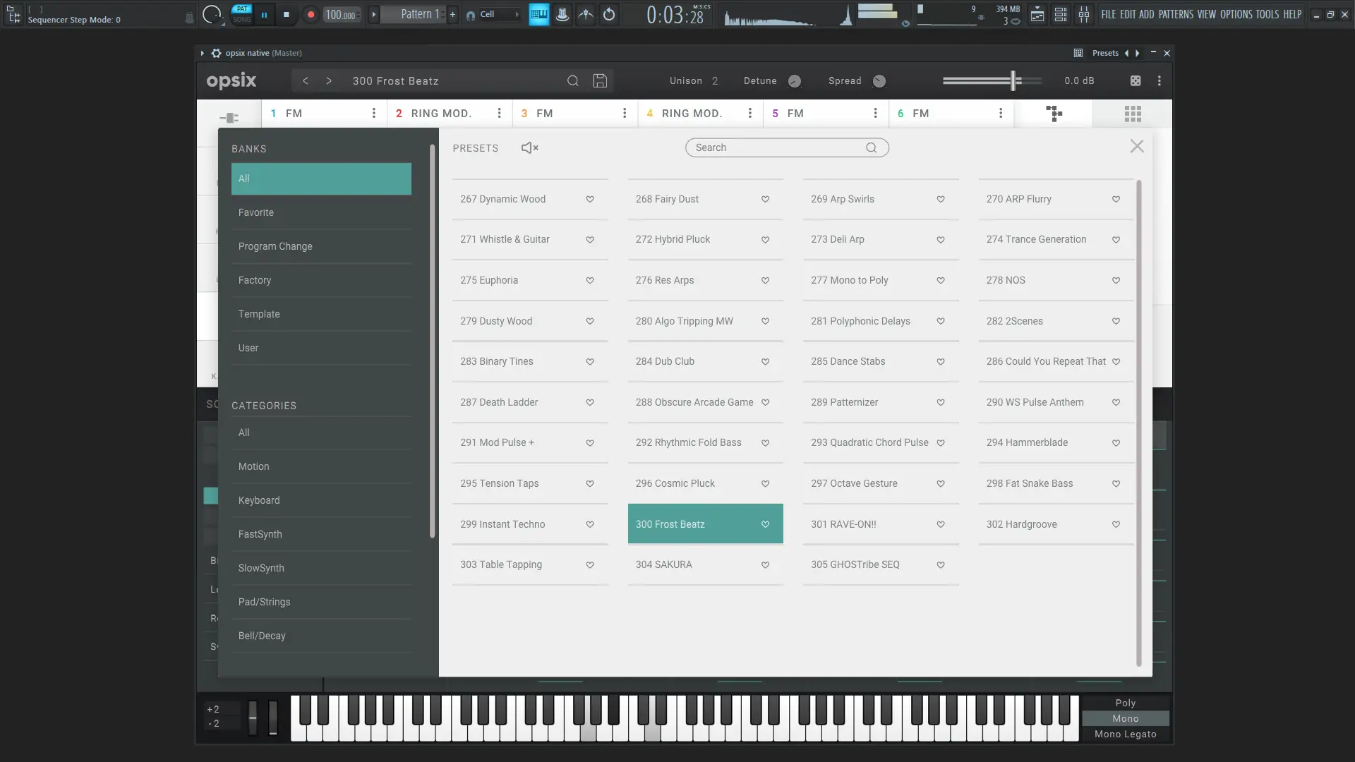 - Интегрированный пошаговый секвенсор позволяет создавать сложные ритмические структуры и мелодические фразы.