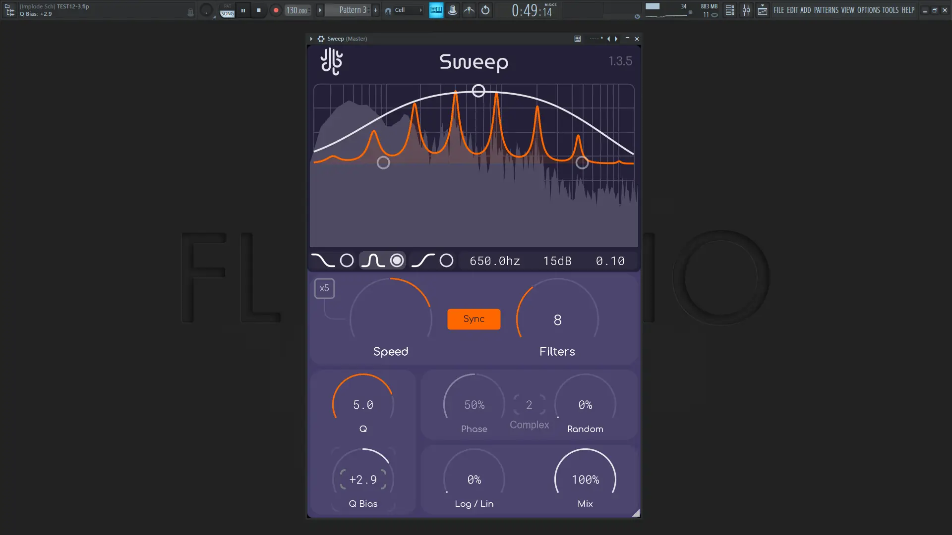 - Гибкая система управления кривой амплитуды полос позволяет точно настраивать характер свипа.