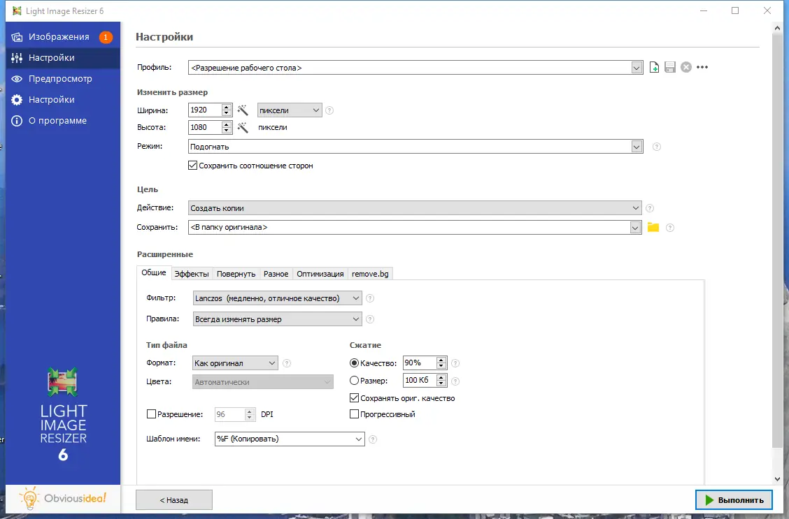 Описание Light Image Resizer