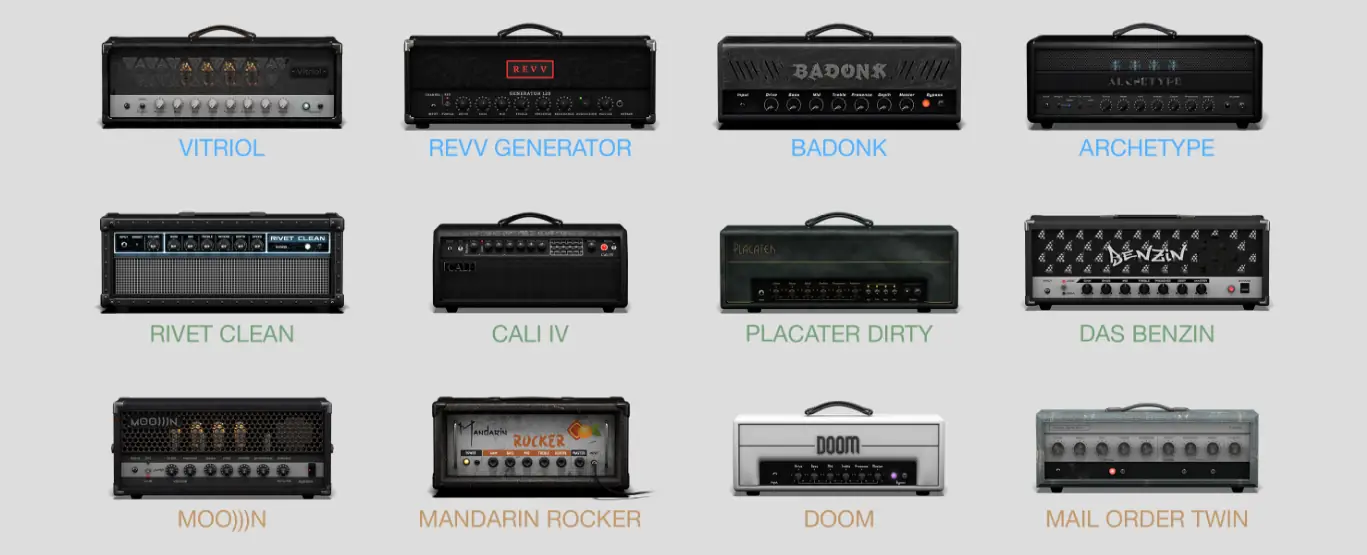- Пользователь может комбинировать четыре типа усилителей с восемью вариантами кабинетов, создавая уникальные конфигурации.