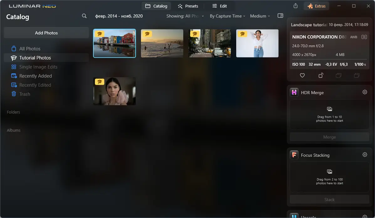 Luminar Neo — современный фоторедактор от компании Skylum, использующий передовые технологии искусственного интеллекта для автоматизации и упрощения процесса обработки изображений. Программа сочетает в себе мощные инструменты ретуши, коррекции экспозиции и замены фона, обеспечивая высокое качество результатов даже при минимальных навыках пользователя. Благодаря поддержке RAW-форматов и встроенному менеджеру изображений, Luminar Neo подходит как для любителей, так и для профессиональных фотографов.