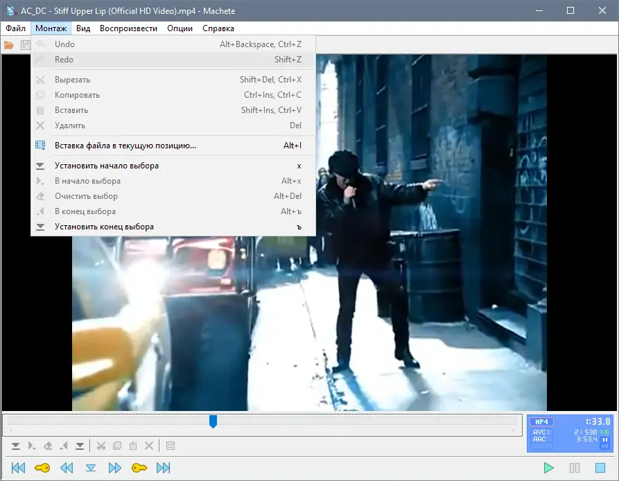 Machete — это мощный и простой в использовании инструмент для редактирования видео и аудио без перекодирования. Программа поддерживает широкий спектр форматов, включая AVI, MP4, MKV, FLV, WMV, MOV, 3GP и аудио в WAV, MP3, WMA, обеспечивая быструю нарезку, объединение и извлечение фрагментов без потери качества. Благодаря отсутствию необходимости в перекодировке, редактирование происходит мгновенно, а результат остаётся в исходном формате.