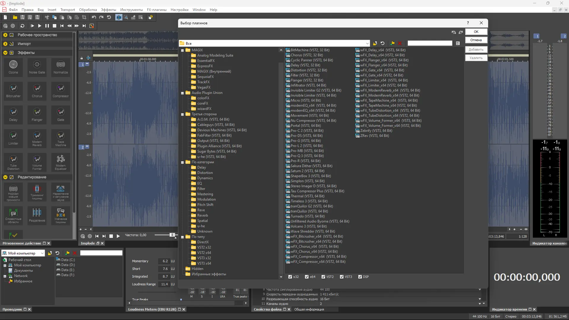 - Поддержка широкого спектра аудиоформатов для импорта и экспорта, включая редкие и устаревшие типы файлов.