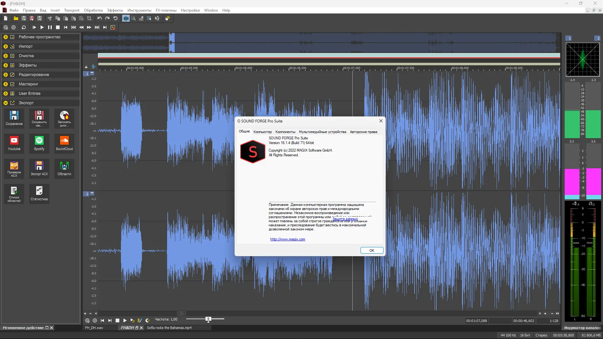 Работа с MAGIX SOUND FORGE
