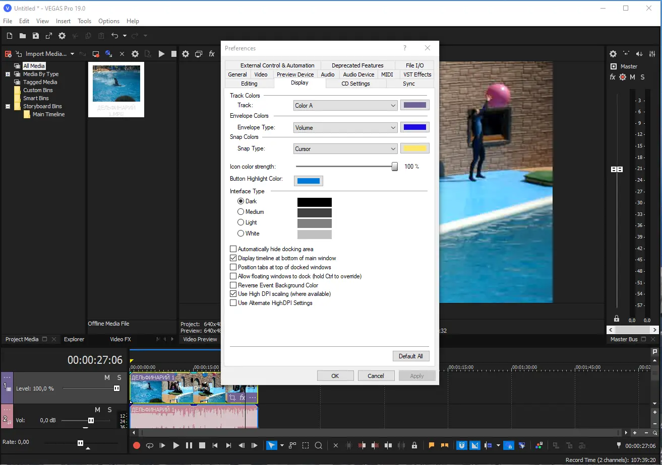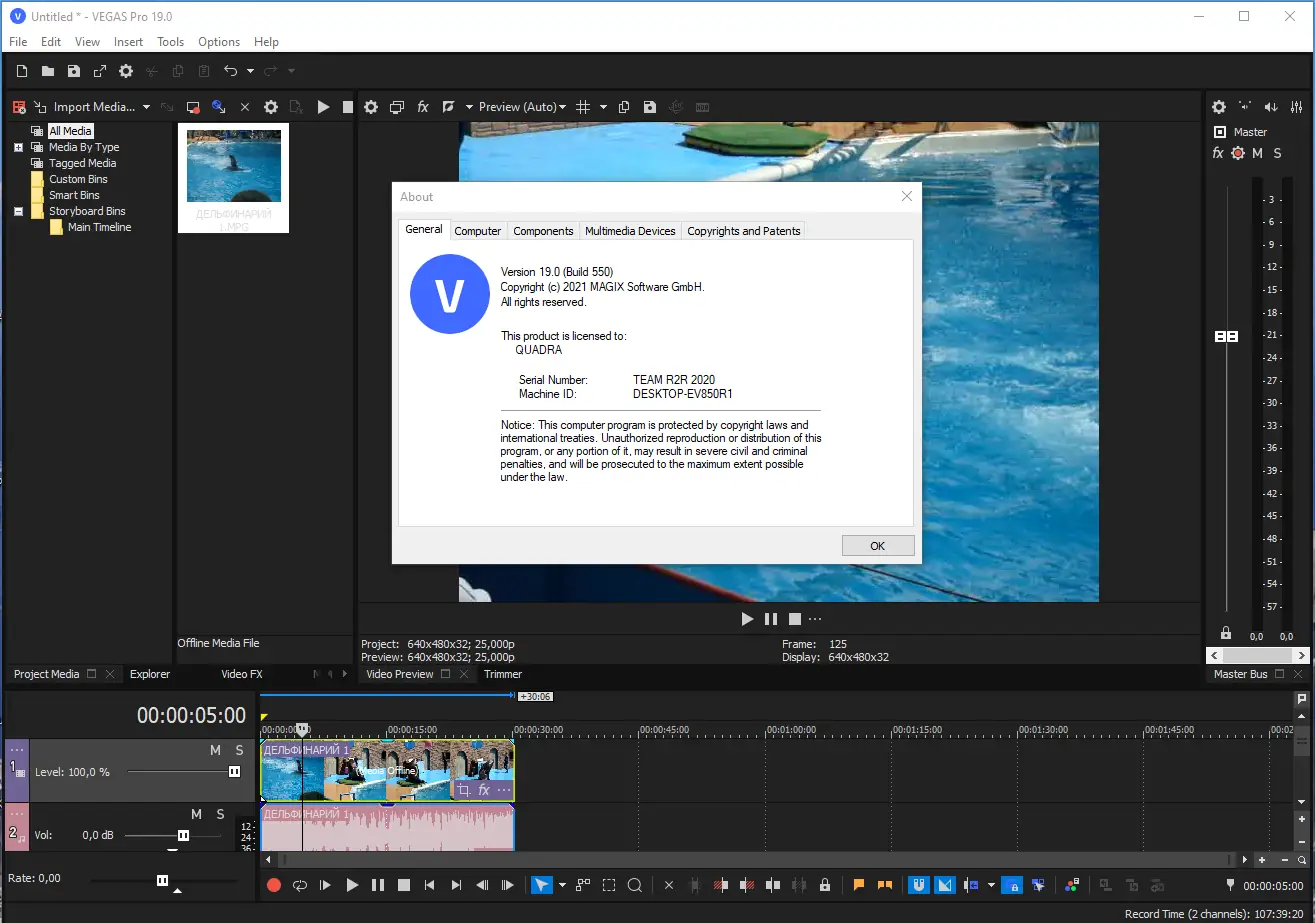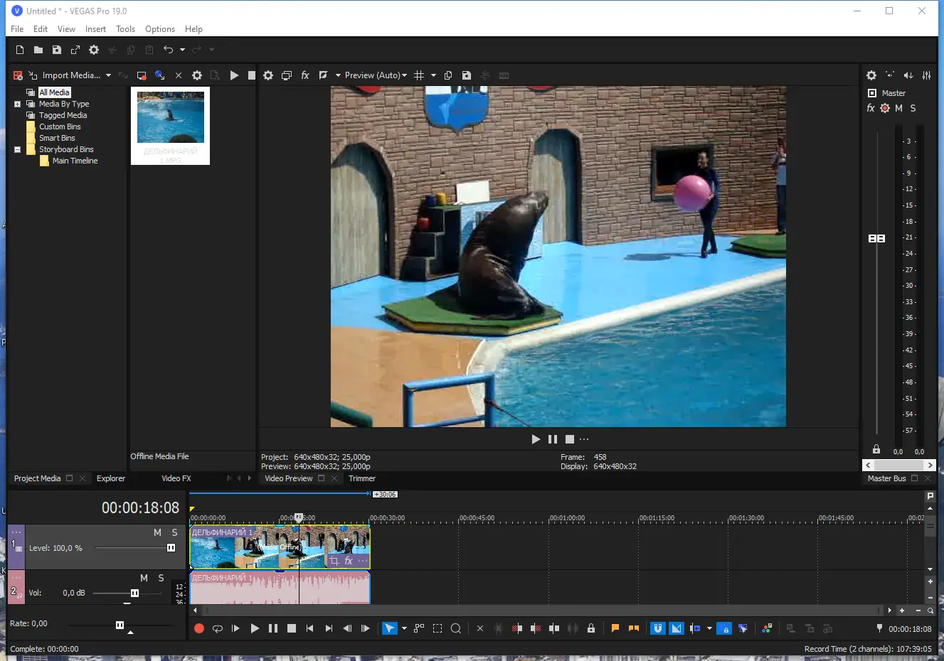Работа в MAGIX Vegas Pro начинается с импорта медиафайлов, которые можно добавлять напрямую на временную шкалу. Программа поддерживает раскадровку, вложенные таймлайны и многокамерное редактирование, что упрощает работу с проектами, снятыми с нескольких точек. Управление ключевыми кадрами и автоматизация параметров позволяют точно настраивать анимацию эффектов, громкость звука и другие параметры. Инструменты маскирования на основе Mocha и планарного трекинга обеспечивают высокую точность при наложении эффектов и коррекции движения объектов. Для работы с текстом доступны настраиваемые заголовки, а субтитры можно записывать в формате SRT прямо на видеовыход. Встроенный захват экрана и поддержка NDI позволяют использовать программу как центр управления потоковым вещанием. Рендеринг осуществляется с ускорением GPU, а режим прокси помогает работать с тяжёлыми файлами даже на менее производительных системах.