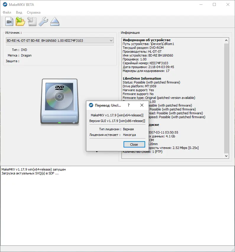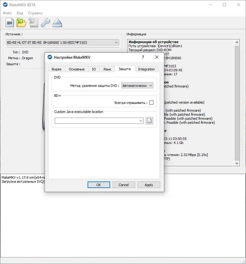 - Работа с дисками, защищёнными AACS и BD+, включая последние версии шифрования