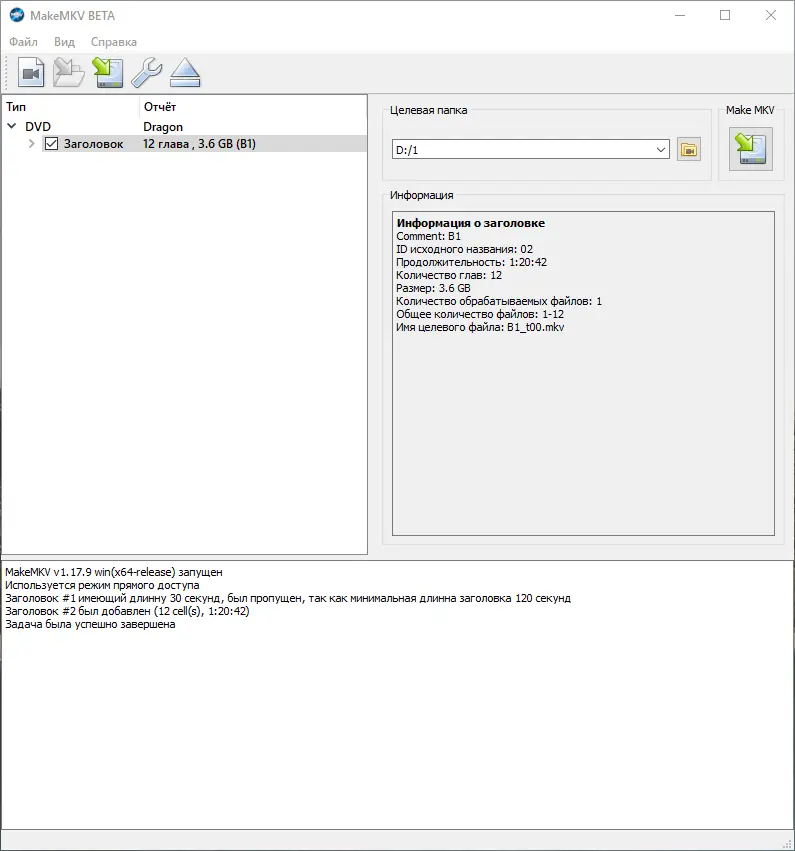 MakeMKV — это мощное программное обеспечение для быстрой конвертации DVD и Blu-ray дисков в формат MKV с сохранением всех аудио- и видеодорожек, глав и метаданных. Программа обходит защиту дисков, включая AACS и BD+, и работает без необходимости установки дополнительных кодеков или утилит. Конвертация занимает всего несколько минут и зависит лишь от скорости оптического привода. Поддержка защищённых дисков и отсутствие региональных ограничений делают её незаменимой для создания цифровых копий коллекций.