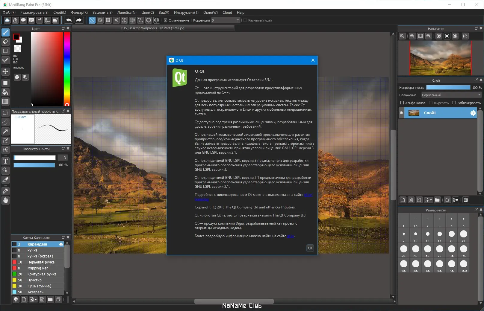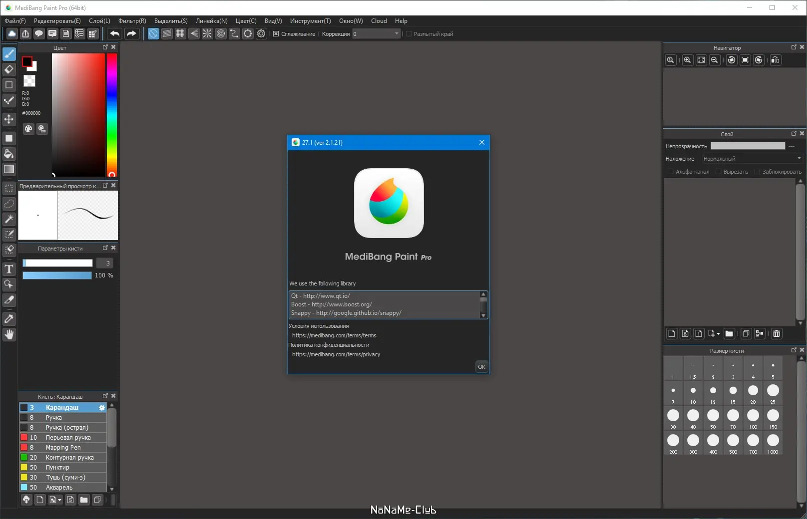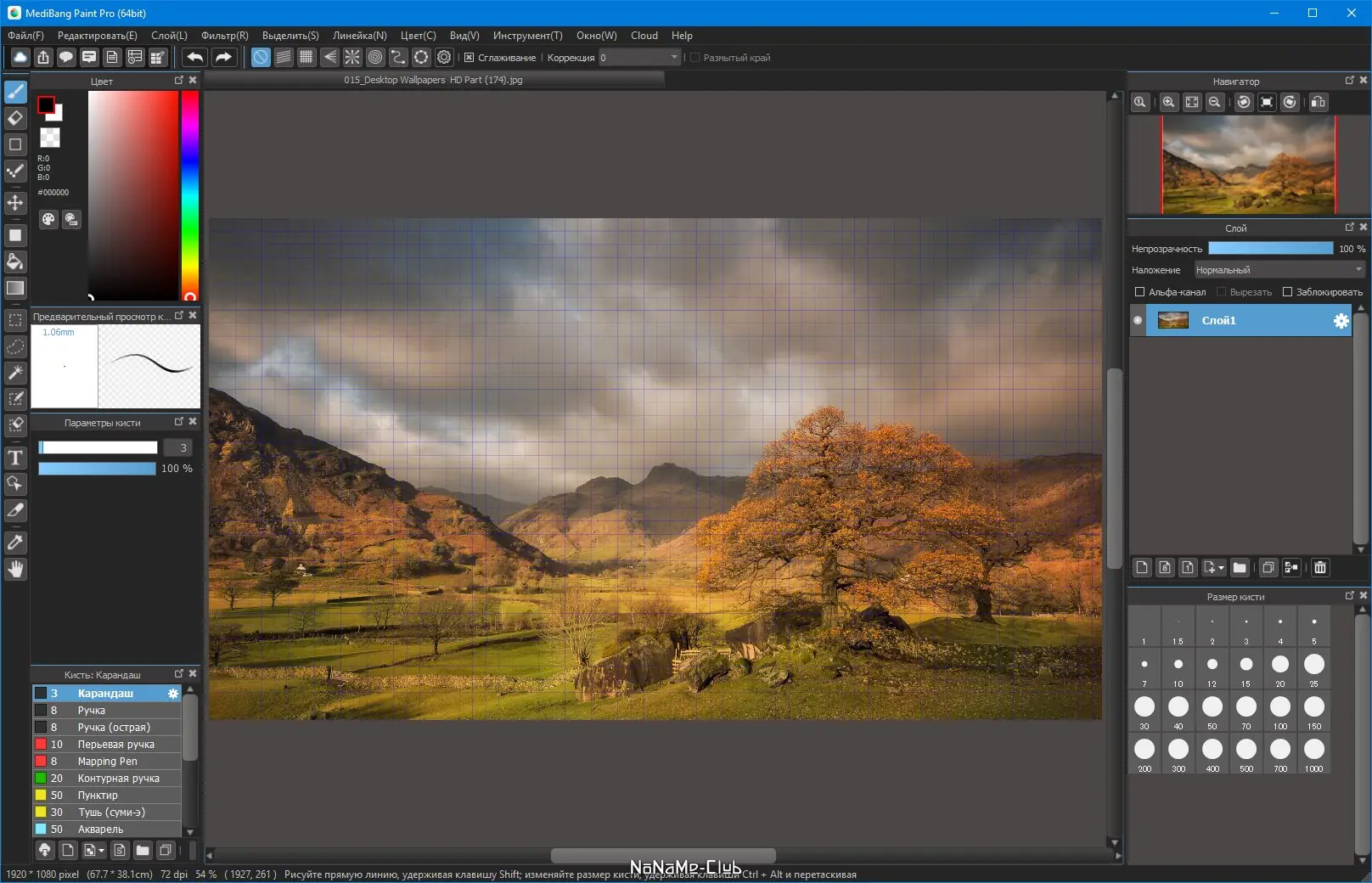 - Набор из более чем 50 типов кистей, включая специализированные инструменты вроде GPen и акварельных кистей, позволяет реализовать любые художественные идеи.