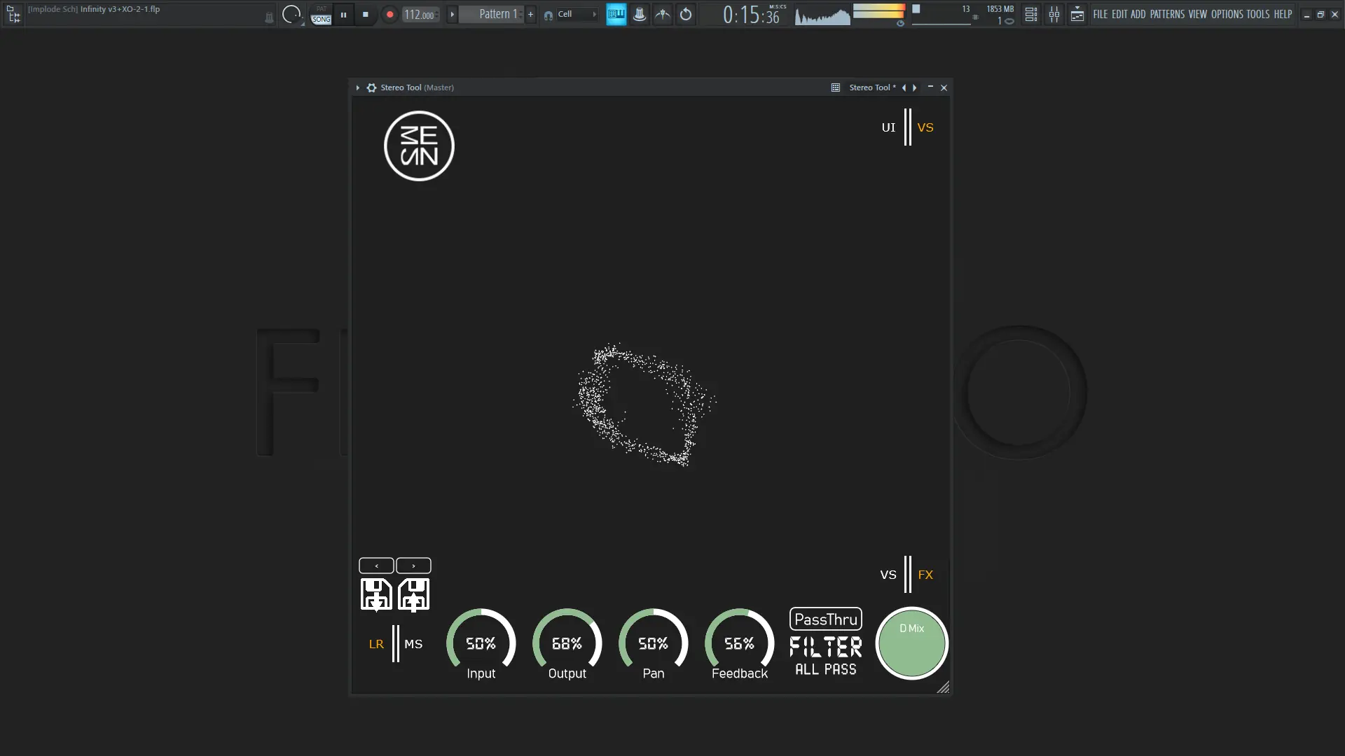 Интерфейс программы интуитивно понятен: основные элементы управления расположены в центральной части окна. Для начала работы необходимо выбрать режим обработки — Left/Right или Mid/Side — в зависимости от задач. Затем можно настроить фильтр с помощью переключателя Filter Select и отрегулировать глубину воздействия через параметры входного усиления и микса эффекта.