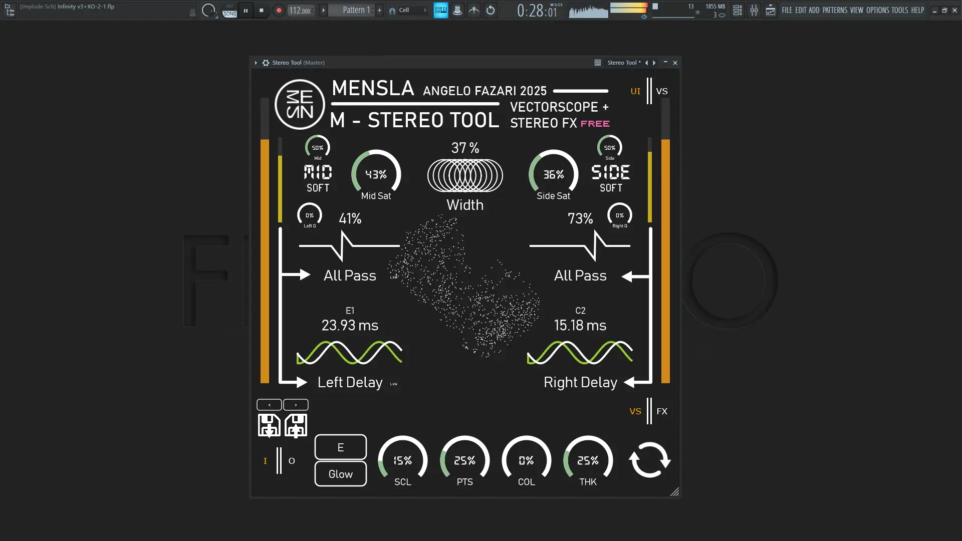 Универсальный стереофонический формирователь Mensla предлагает точную настройку звукового поля с регулировкой левого, правого и центрального каналов, поддержкой mid/side обработки и уникальным режимом векторного поля. Инструмент сочетает фильтры, эффекты и визуализацию для профессионального контроля стереоизображения. Подходит для сведения, мастеринга и экспериментальной обработки аудио.