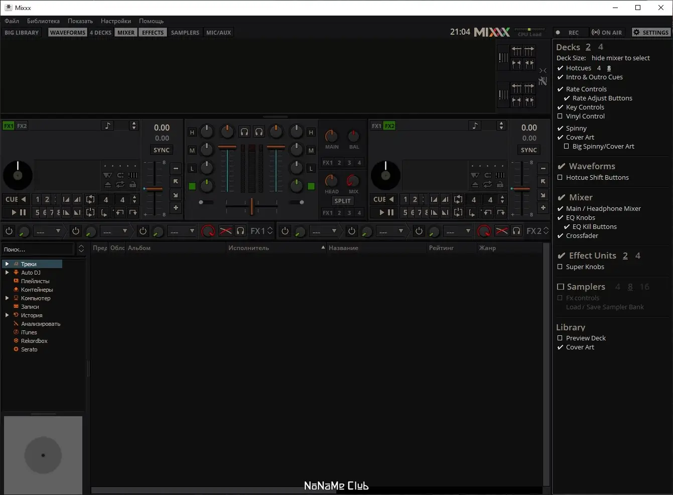 Mixxx — это свободное программное обеспечение, разработанное для создания живых музыкальных миксов. Оно предоставляет пользователю всё необходимое для диджейской работы: два виртуальных проигрывателя, микшер, библиотеку треков и систему эффектов. Приложение активно развивается, имеет регулярные обновления и поддерживается сообществом музыкантов и разработчиков по всему миру. Абсолютная бесплатность и отсутствие вирусов делают его привлекательным выбором для тех, кто хочет освоить ремесло dj.