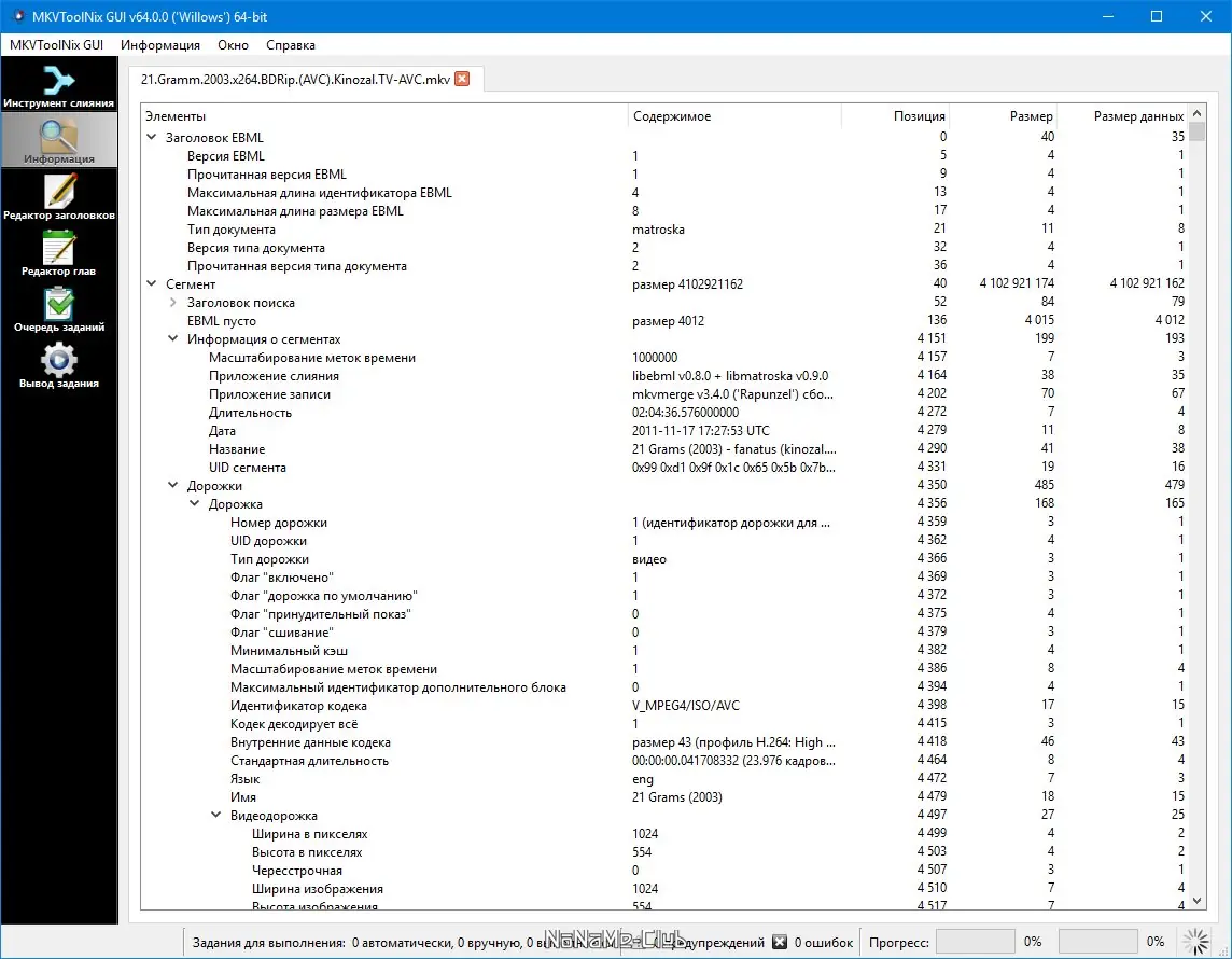 Описание MKVToolNix