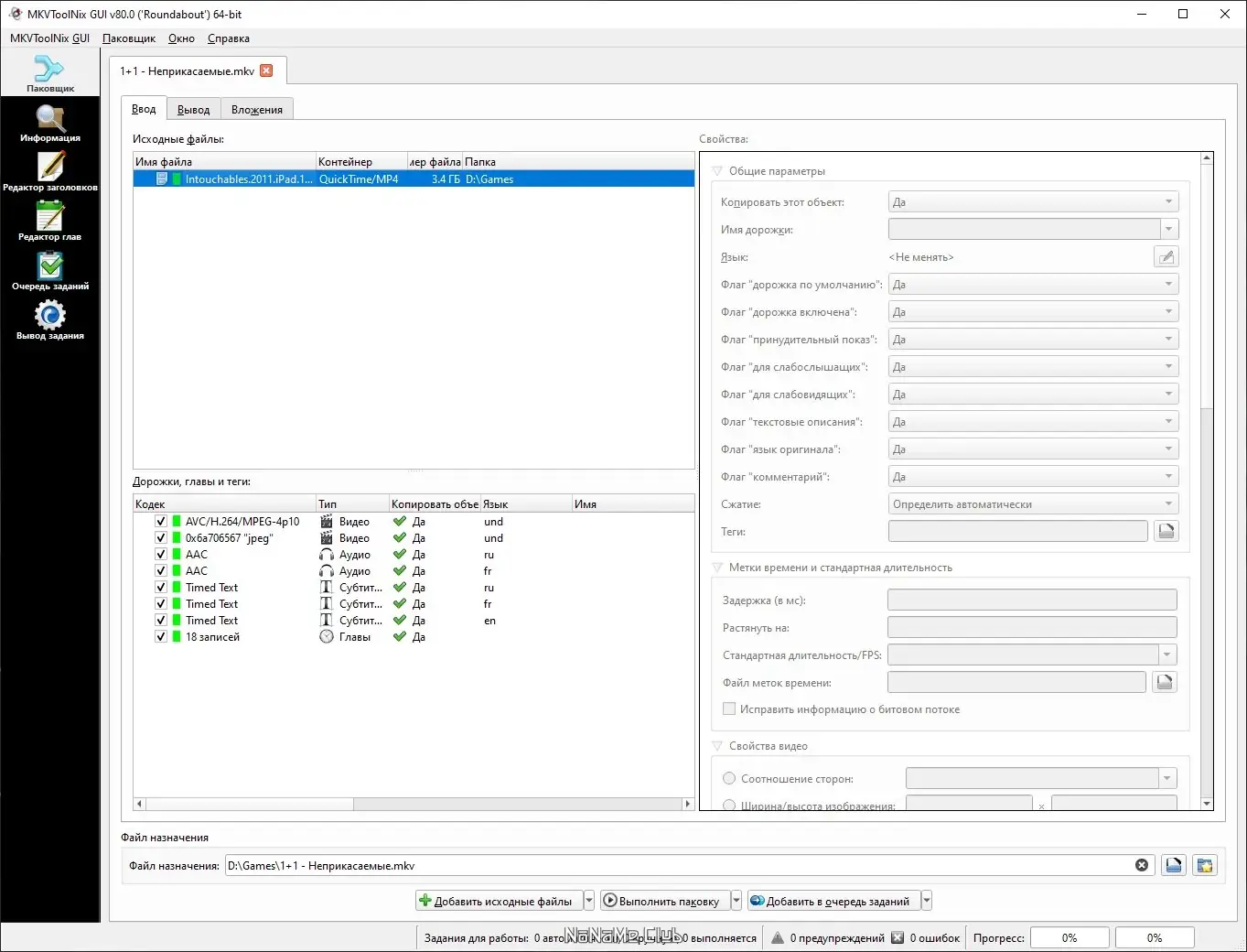 MKVToolNix — это многофункциональный инструмент для работы с видеофайлами в контейнере MKV, позволяющий объединять, редактировать и извлекать потоки без потери качества. Программа поддерживает добавление и удаление аудиодорожек, субтитров, а также склейку и разделение файлов с высокой скоростью и точностью.