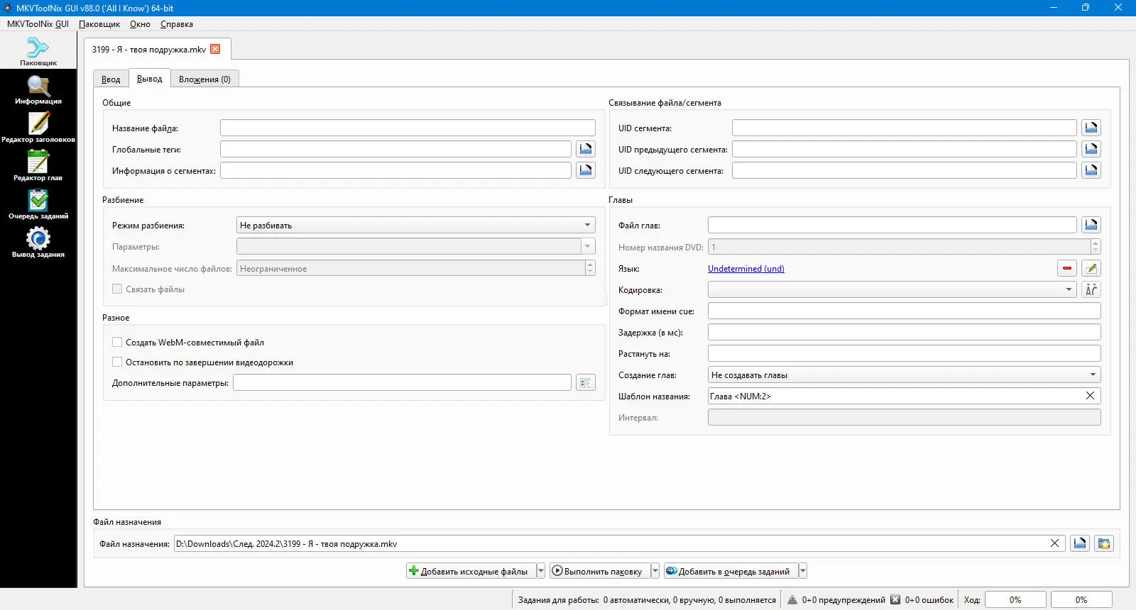 Интерфейс программы представлен в виде отдельных модулей: mkvmerge, mkvinfo, mkvextract и других. Основная задача — объединение разных потоков в единый файл через графический интерфейс или командную строку. Пользователь добавляет видео, выбирает нужные аудиодорожки и подключает файлы с субтитрами, настраивая параметры отображения. Доступна функция предварительного просмотра структуры контейнера перед сохранением. После сборки файл можно проверить на целостность с помощью встроенных инструментов. Поддержка gui делает процесс интуитивно понятным даже для новичков. Все операции выполняются быстро, без потери качества изображения или звука.