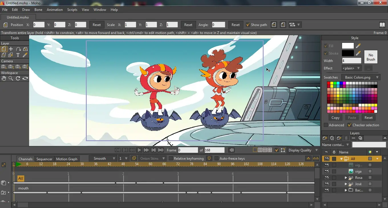 Moho — это профессиональная программа для создания 2D-анимации, предназначенная для цифровых художников и аниматоров, стремящихся к высокому качеству визуального контента. Программа сочетает передовые технологии и интуитивный интерфейс, позволяя реализовывать сложные проекты с минимальными временными затратами. Она поддерживает широкий спектр инструментов, включая векторную графику, костную анимацию, физические эффекты и работу со слоями. Moho обеспечивает стабильность, производительность и гибкость, необходимые для создания полноценных анимационных фильмов, видеороликов и игрового контента.