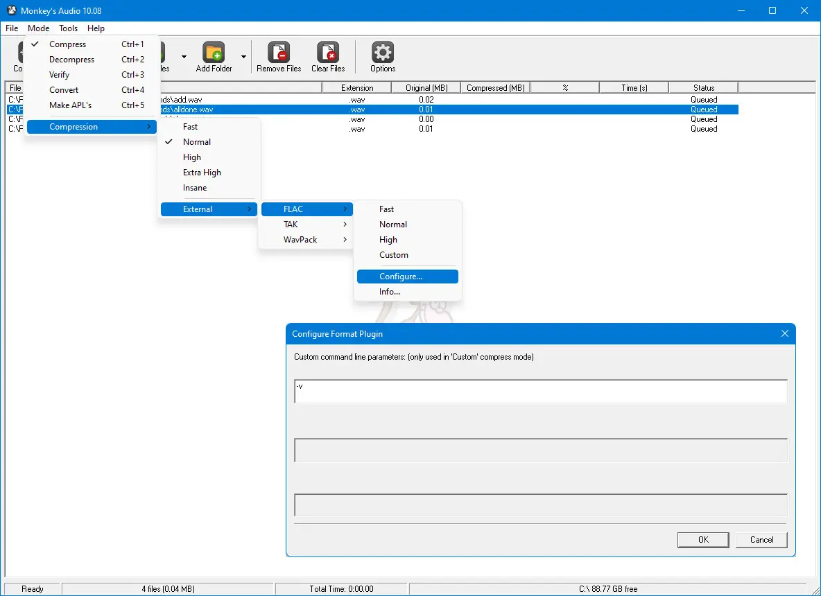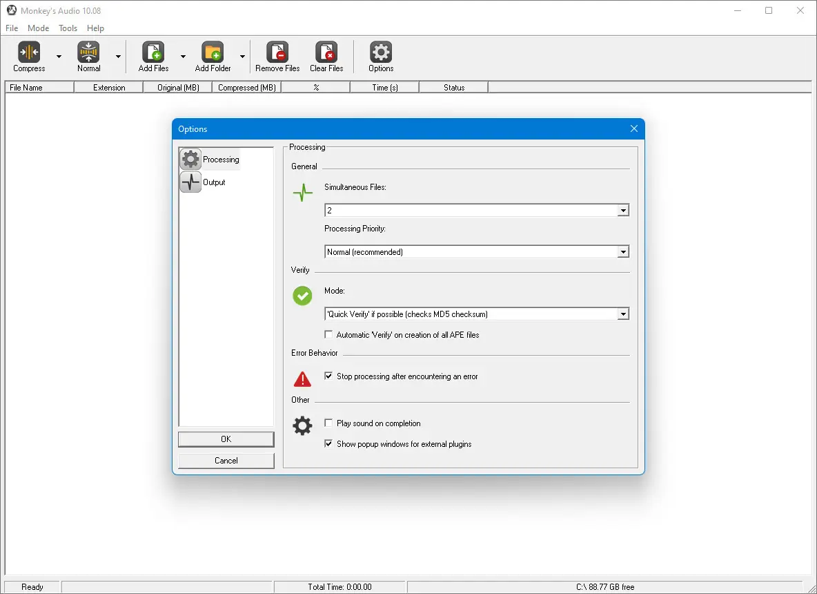 Использование программы начинается с выбора нужного режима: сжатие, распаковка, проверка целостности или конвертация. Пользователь может добавить один или несколько файлов, после чего указать целевой формат и настройки сжатия. Интерфейс минималистичен, но интуитивно понятен, особенно при использовании контекстного меню проводника. Доступна функция проверки файлов APE на ошибки, что полезно при хранении архивов. Также можно редактировать теги, изменять параметры кодирования и подключать внешние плагины для расширения функционала. Поддержка форматов Rkau, Wavpack и Shorten позволяет конвертировать данные в альтернативные lossless-форматы, а внешние кодировщики вроде Lame или MP3Enc открывают возможность преобразования в MP3 и OGG.