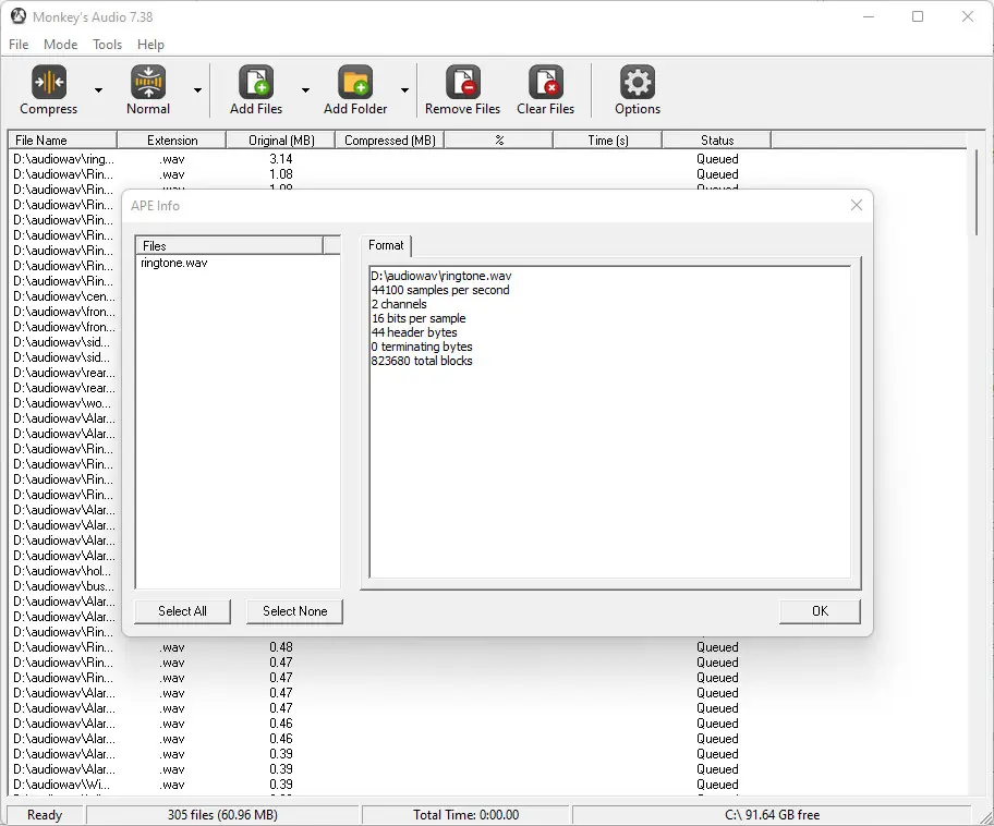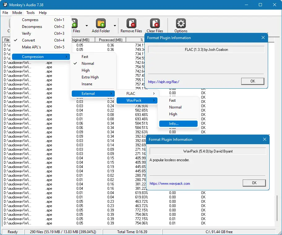 - Поддерживает конвертацию из WAV в APE и обратно с высокой степенью сжатия.