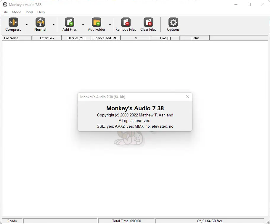 Monkey’s Audio — программа для сжатия аудиофайлов без потерь в формат APE, обеспечивающая сохранение исходного качества звука. Утилита поддерживает конвертацию между различными аудиоформатами, включая WAV, MP3, OGG, а также работу с тегами и встраивание в проводник Windows.
