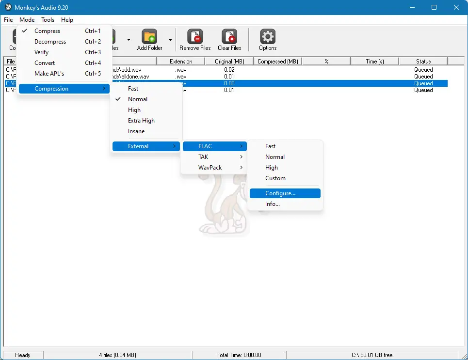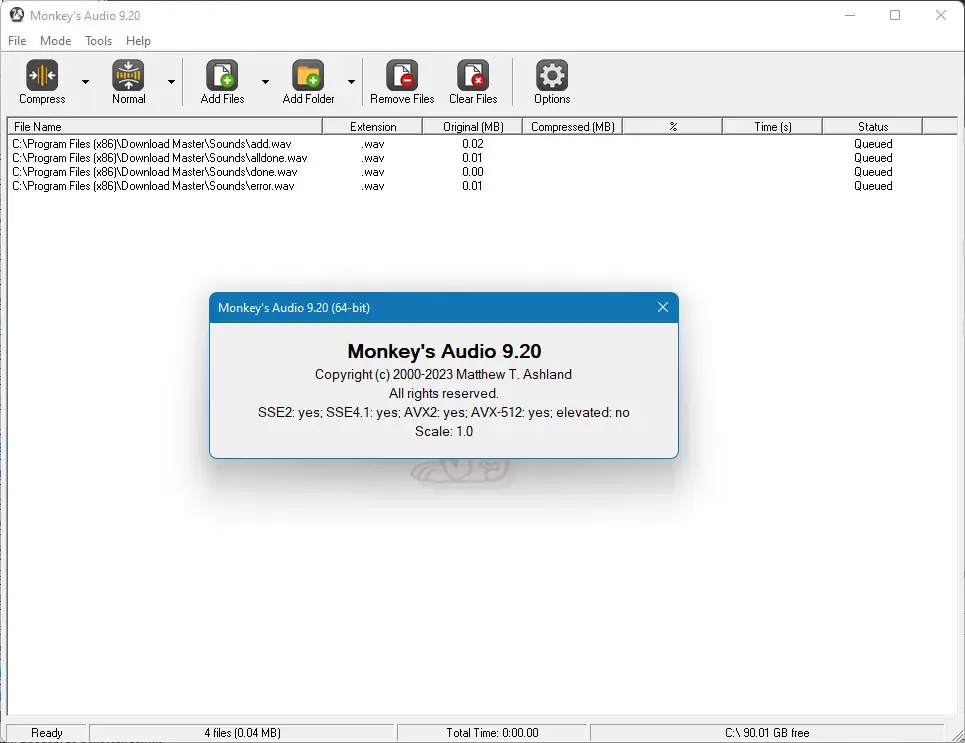 Monkey’s Audio — это утилита для сжатия и конвертации аудиофайлов без потери качества, использующая собственный формат APE. Программа поддерживает работу с WAV, преобразование в альтернативные lossless-форматы и интеграцию с файловой системой Windows.