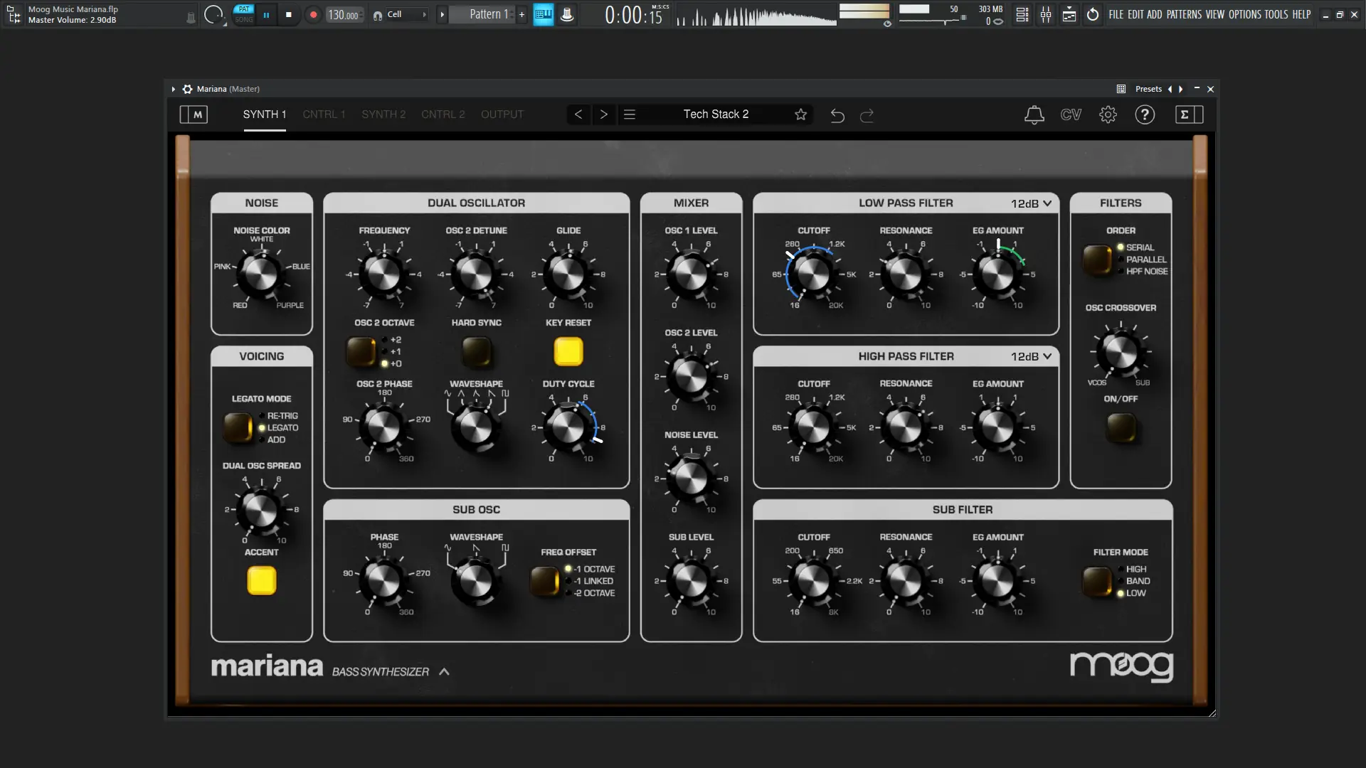 - Dual Layers — два независимых слоя генераторов позволяют комбинировать разные тембры или использовать дуофоническое звучание для более выразительных партий.