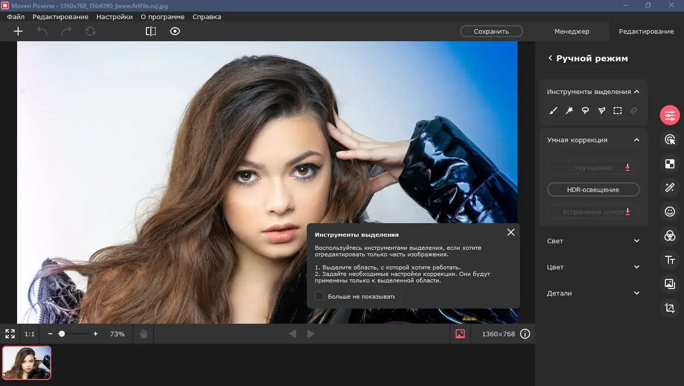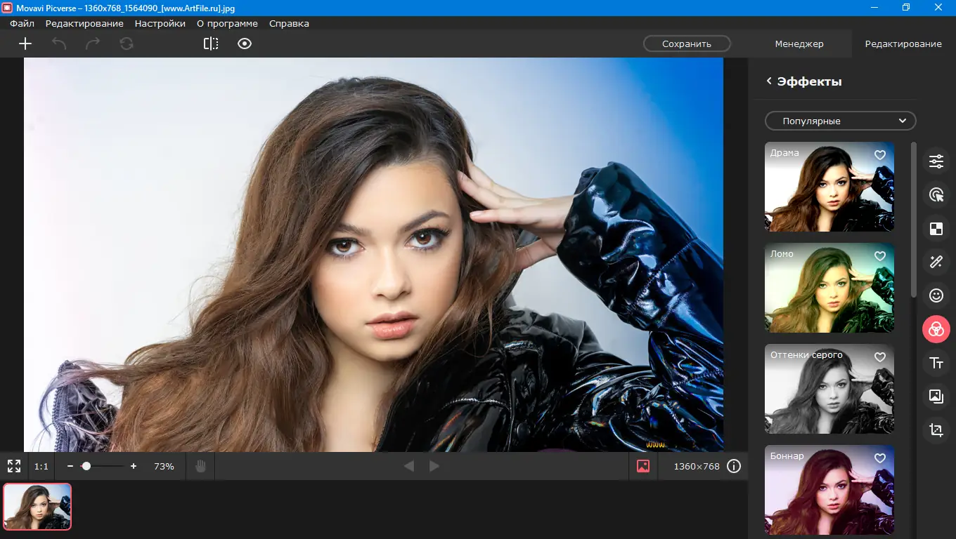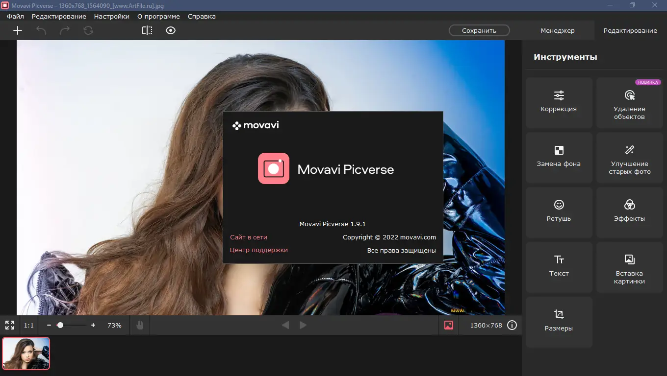 Благодаря сочетанию автоматизации и ручных инструментов, Movavi Picverse подходит для быстрой обработки фото в домашних условиях и при подготовке изображений к публикации.