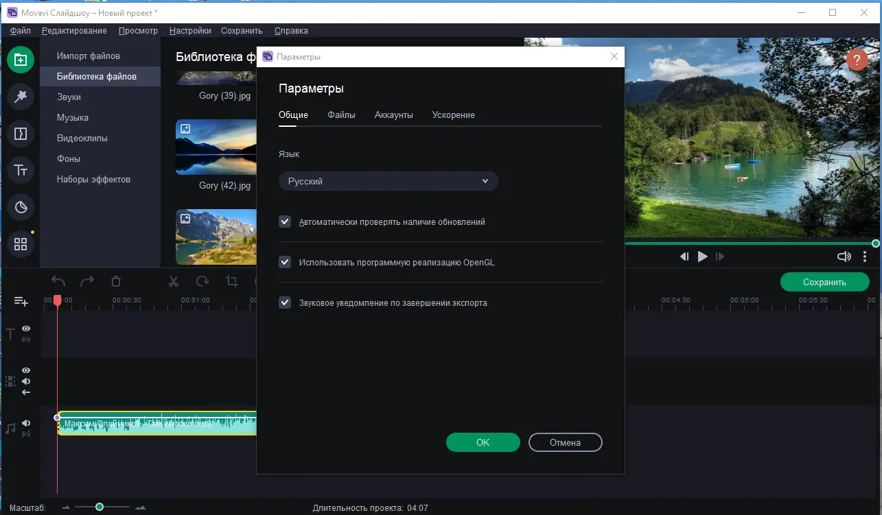 Movavi Slideshow Maker демонстрирует высокую производительность и стабильность при обработке различных типов контента. Программа не требует мощного железа и работает плавно даже на средних конфигурациях. Удобный интерфейс и подсказки делают процесс интуитивно понятным, а наличие портативной версии увеличивает гибкость использования.