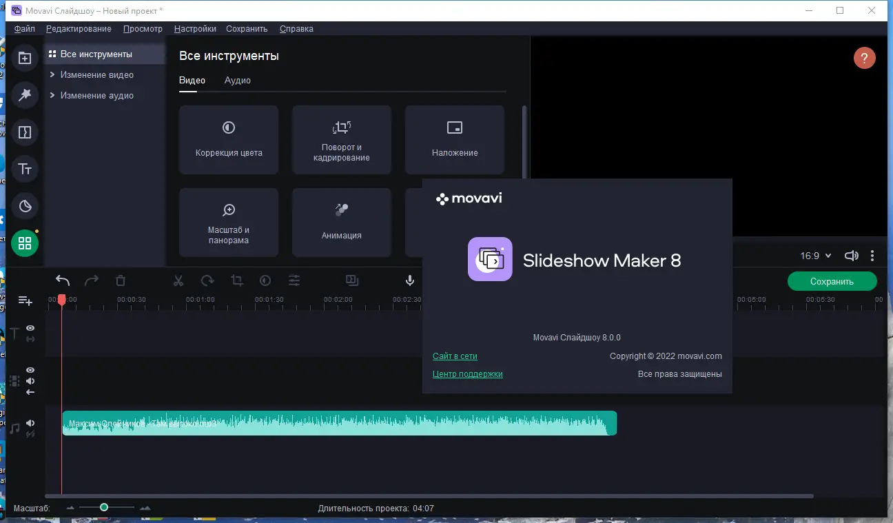 Movavi Slideshow Maker сочетает в себе простоту интерфейса и широкие возможности для творческого редактирования. Программа позволяет импортировать изображения, видеоклипы и аудиофайлы, объединяя их в цельное слайд-шоу с плавными переходами и сопровождением. Поддержка множества форматов делает её универсальным решением для обработки мультимедийного контента из разных источников.